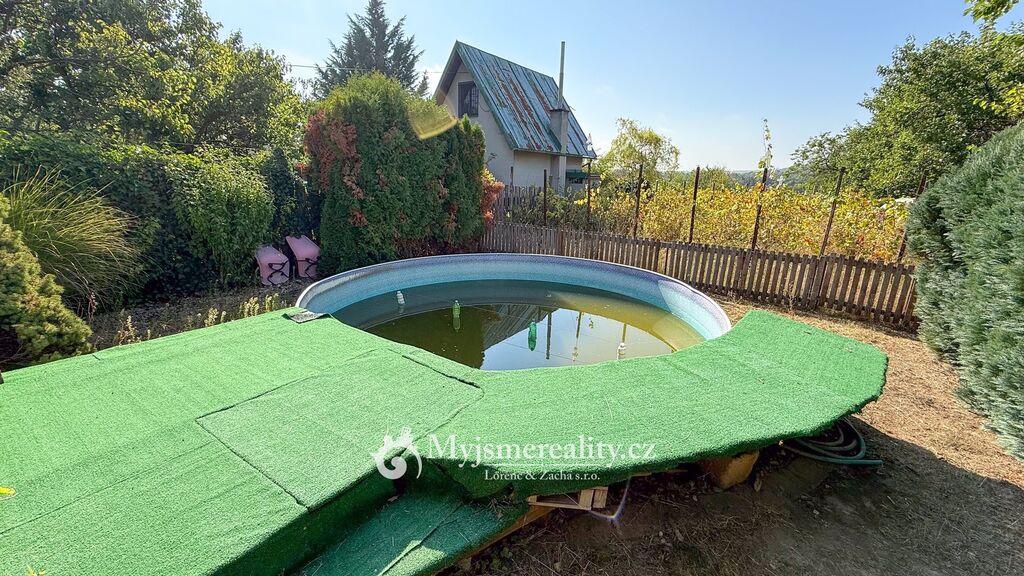 Tento pozemek spojuje klid přírody s pohodlím plně vybavené zahrady. Díky prostorné chatě, bazénu a pergole si zde vychutnáte pohodové letní večery, posezení s přáteli i relaxaci v soukromí. Vinice dodává místu jedinečné kouzlo a příležitost vychutnávat si vlastní víno přímo u zdroje.