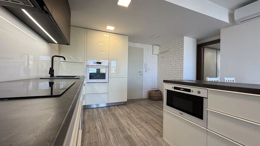 Byt je situován v 5.NP a jeho dominantou je již na první pohled dostatek světla a prostor. Vlastní rekonstrukce byly velmi důkladná a nic nebylo ponecháno náhodě. Od kompletní rekonstrukce elektrických rozvodů s třífázovým 20 A jističem, přes nové rozvody vody, odpadů, položení nových PVC podlahovin do jednotlivých pokojů, keramických obkladů a dlažby do nové zvětšené moderní koupelny, posunutí a odstranění původních příček v bytě, osazení moderní kuchyně  s ostrůvkem a všemi potřebnými elektrospotřebiči, nových dřevěných dveří a zárubní, sádrokartonových podhledů pro osazení LED osvětelní, klimatizaci , osazení nových vstupních dveří  až po instalaci na míru zhotovených šatních skříní na spojovací chodbě a v jednotlivých pokojích, v neposlední řadě.