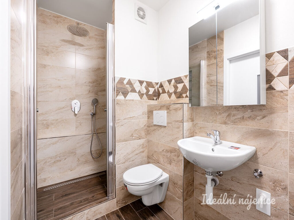 Byt je nabízen částečně vybavený, což umožňuje novým nájemníkům doladit si interiér podle vlastního vkusu. Kuchyně je zařízena lednicí s mrazákem, elektrickou troubou, indukční varnou deskou, digestoří a dostatkem úložného prostoru. Prostorný obývací pokoj díky velkým oknům působí světlým a vzdušným dojmem a nabízí dostatek místa jak pro pohodlné sezení, tak i pro jídelní kout. Ložnice je prakticky propojena s balkonem, což ocení zejména ti, kteří si potrpí na ranní kávu na čerstvém vzduchu. Koupelna je vybavena sprchovým koutem, umyvadlem, koupelnovou skříňkou a toaletou.