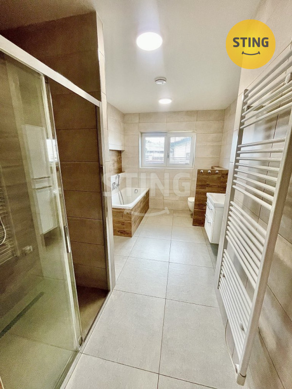 Exklusivně nabízíme pronájem rodinného domu o velikosti 4+kk s garáži. Dům se nachází na lukrativním místě U Plesenky, Martinov - Ostrava mezi novostavbami, ulice je velmi klidná. Rodinný dům nabízí novou kuchyň s kuchyňskou linkou s vestavěnými spotřebiči jako myčka, mikrovlnná trouba, digestoř, trouba, indukční deska, lednice, vše zn. Kluge, tři samostatné pokoje, koupelnu se sprchovým koutem a toaletou s obklady, samostatnou toaletu. Obývací pokoj nabízí výhled do zeleně, vstup na zahradu skrze francouzské dveře, dále obývací pokoj nabízí krbová kamna pro chladné zimní dny. Vstup do garáže skrze vestibul domu, vjezd přes elektrická vrata. Vytápění podlahové, ohřev vody fotovoltaickým panelem - nízké náklady, střešní krytina Satjam Roof. V blízkosti domu se nachází ve vzdálenosti 150m tramvajová a autobusová zastávka, mateřská škola, sportovní hřiště, pošta, cyklostezky. Doporučujeme prohlídku.