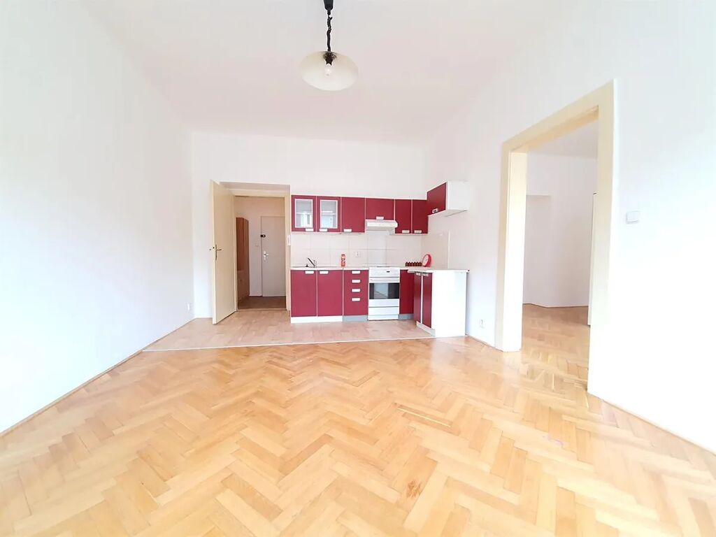 Pěkný světlý byt 2+kk 52 m2, Praha 4 - Nusle, nám. Hrdinů, 2. patro - výtah, byt sestává ze 2 pokojů, vstupní haly a pěkné velké koupelny s vanou a toaletou, je nezařízený vybavený kuchyňskou linkou se sporákem a troubou, podlahy parkety, vytápění a ohřev vody ústřední - plynová kotelna v domě. Internet Vodafone nebo O2, možno sklep + 500,- Kč./měs. Výborná lokalita s dobrou občanskou vybaveností, 200 metrů od metra Pražského povstání. PENB:D
