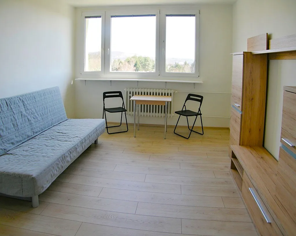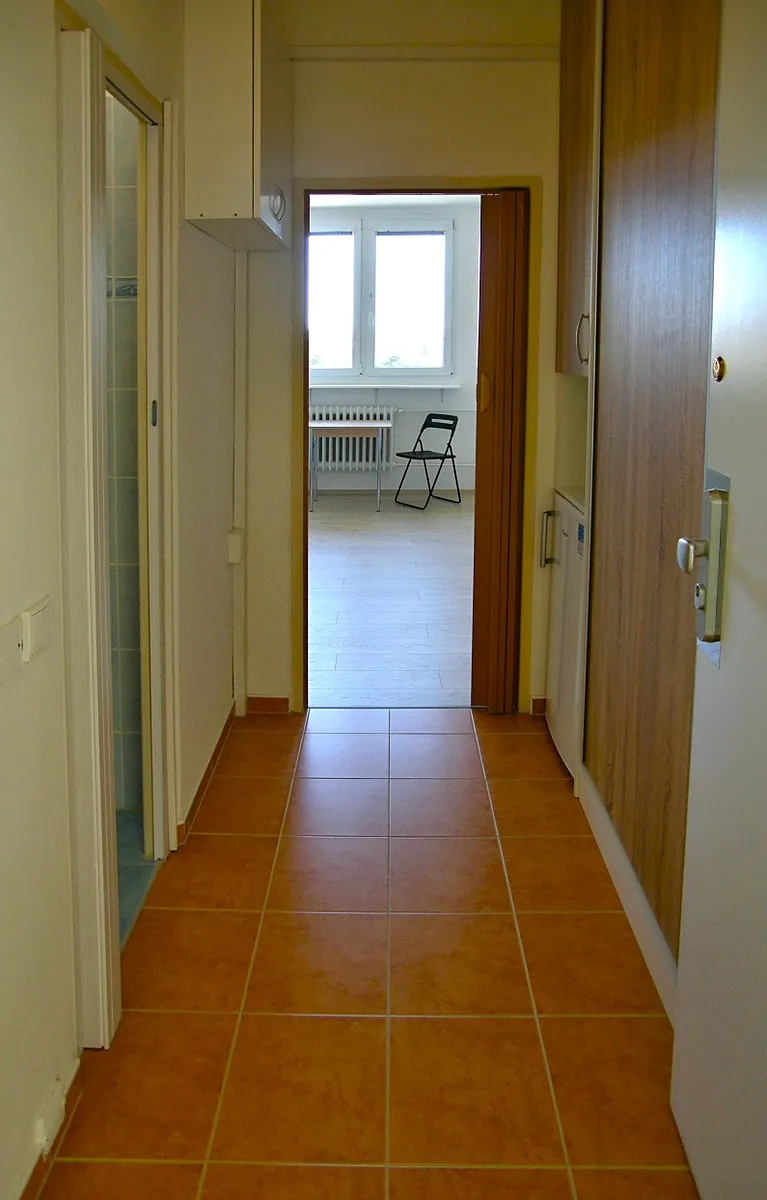 Pronajmu slunný byt 1+kk o CP 24 m2 nacházející se na Halasově náměstí v 6. nadzemním podlaží bytového domu.