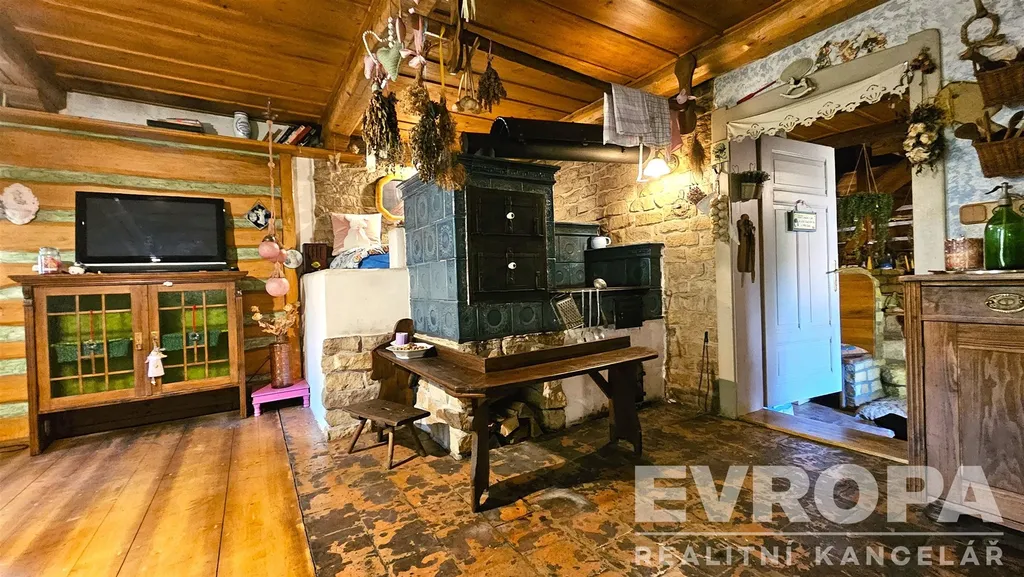 Exteriér domu je vybaven terasou a zahrádkou, která je ideální pro odpočinek, zábavu nebo prostě pro spojení s přírodou. Struktura a poloha chalupy nabízí dostatek venkovního prostoru pro různé aktivity. Sklep zde také nalezneme, který poskytuje praktický úložný prostor.