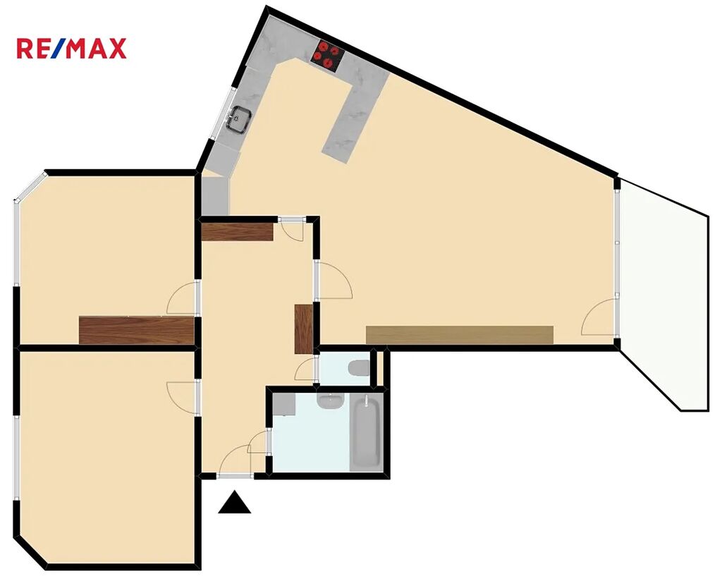 K pronájmu nabízíme byt v cihlovém domě o dispozici 3+kk. Byt se skládá z kuchyně a obývacího pokoje, odkud je vstup na lodžii/terasu s výhledem na ulici Bělohorská, koupelny, WC a dvou ložnic.