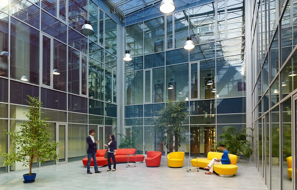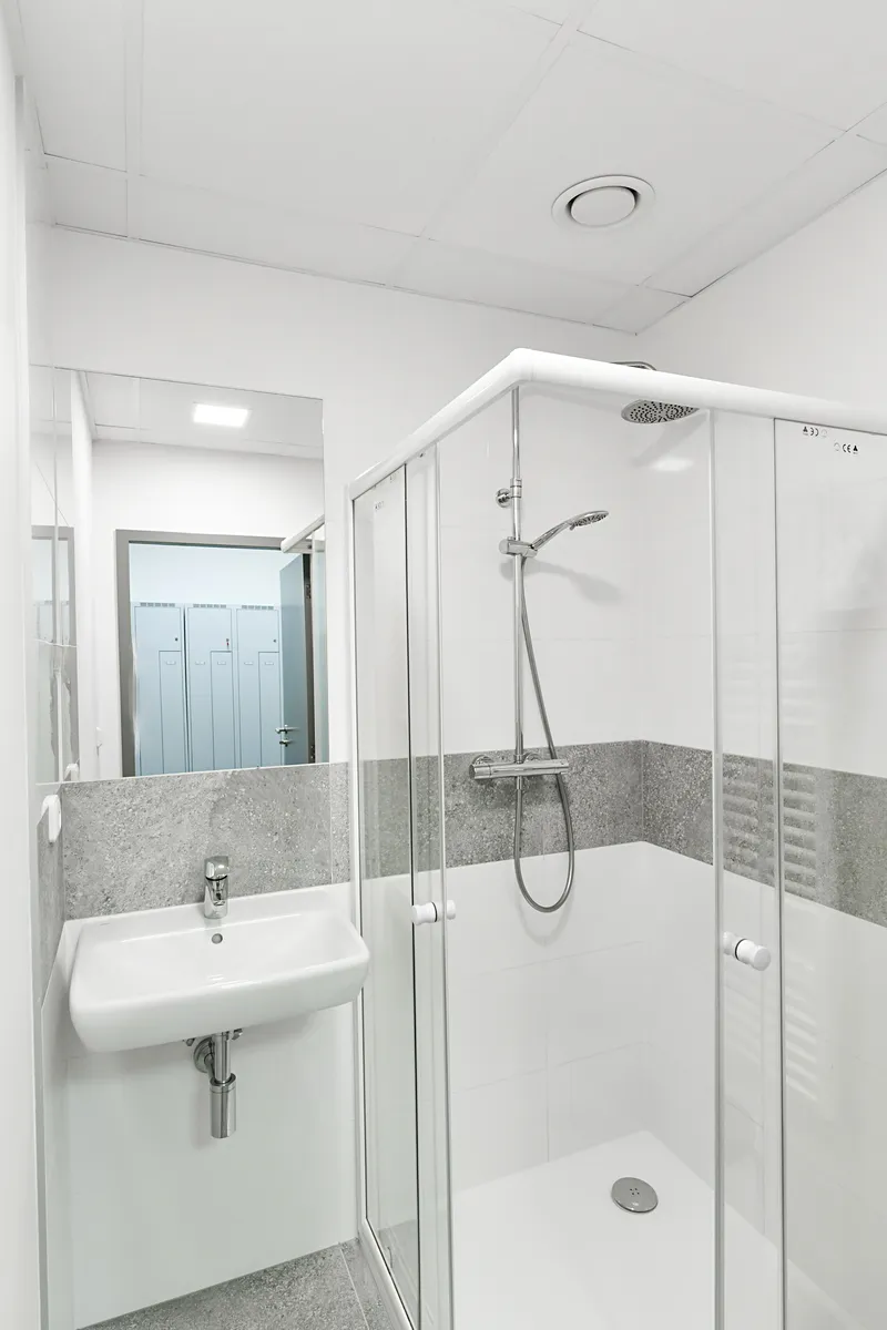 V budově naleznete veškeré zázemí ve formě sdílených zasedacích místností, fitness, kolárny, včetně zázemí se sprchami a šatnami.
