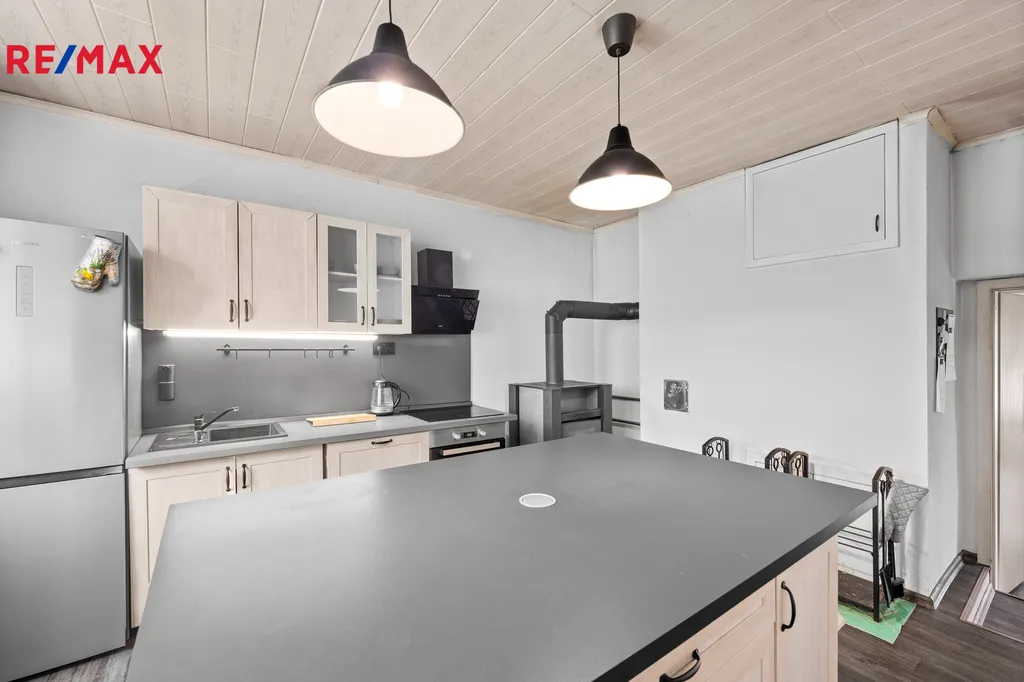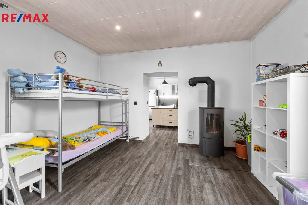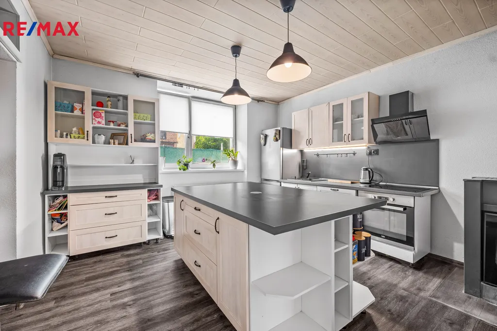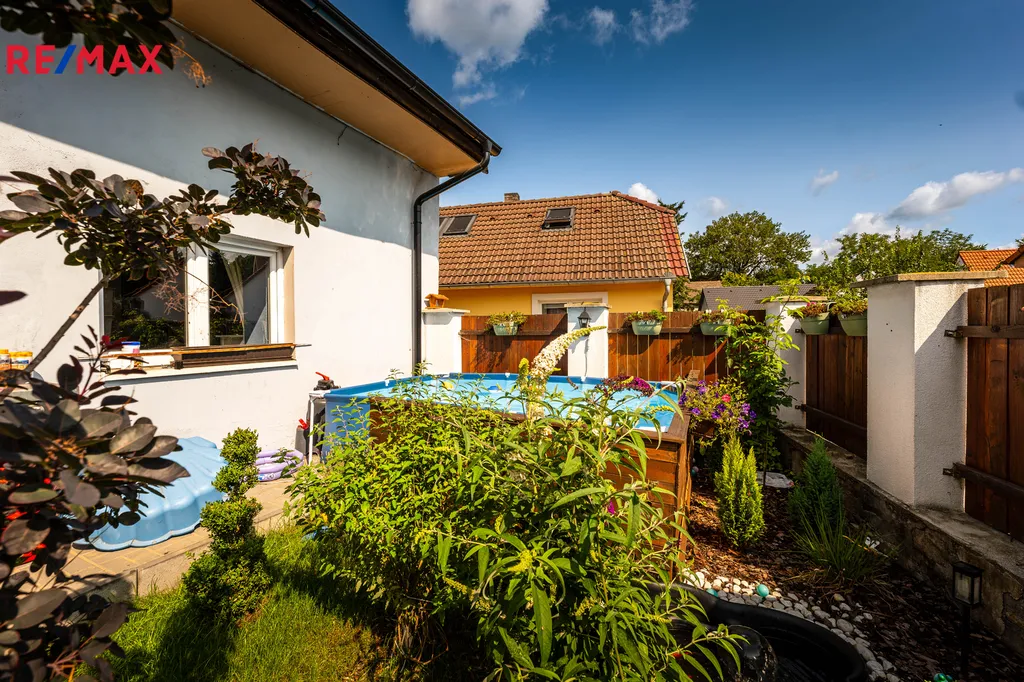 Rodinný dům o celkové zastavěné ploše 134 m2 je situován na uzavřeném pozemku 304 m2, na jehož ploše je umístěna i garáž. Stavba prošla rozsáhlou rekonstrukcí včetně střešní krytiny a je dispozičně řešena jako 3+kk. Interiér se skládá z prostorného obývacího pokoje, moderně zařízené kuchyně s ostrůvkem, dětského pokoje, koupelny se sprchovým koutem, samostatné toalety s technickým zázemím, ložnice a dlouhé chodby. Nemovitost je vkusně zařízena a působí velmi útulným dojmem. Dvůr domu je zcela oplocen a nabízí dostatečné soukromí.