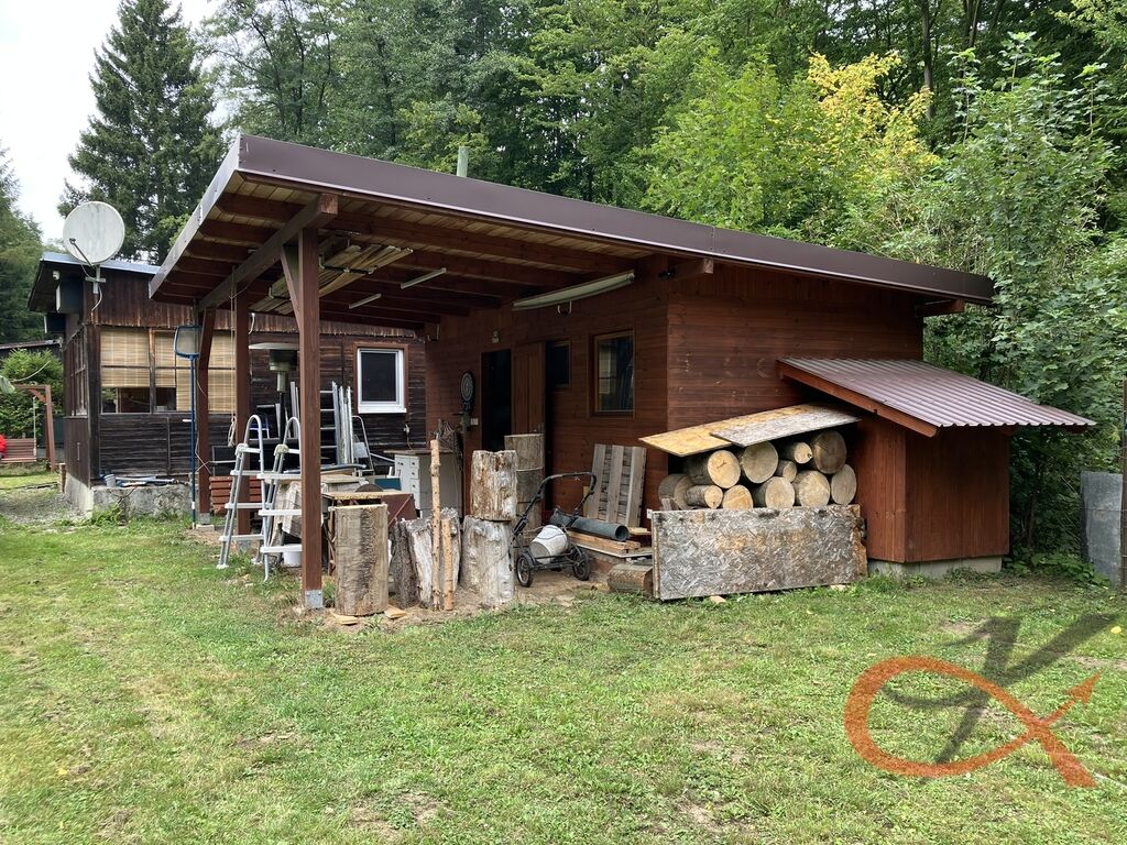 Před chatou se nachází prostor s možnosti venkovního posezení a dále okrasná zahrada, která nabízí prostor pro pěstování rostlin a ovocných stromů, nebo klidné relaxační chvíle v přírodě. Vedle chaty je situována dřevěná vedlejší stavba s přístřeškem ke skladování a nachází se v ní sprchový kout a suché WC. Ve vedlejší stavbě je instalován elektrický bojler na ohřev užitkové teplé vody. Užitková voda je rozvedena z nádrže přes domácí vodárnu do kuchyně a do sprchy a je rovněž rozvedena pro zalévání záhonu. Pitná voda na pozemku není.
