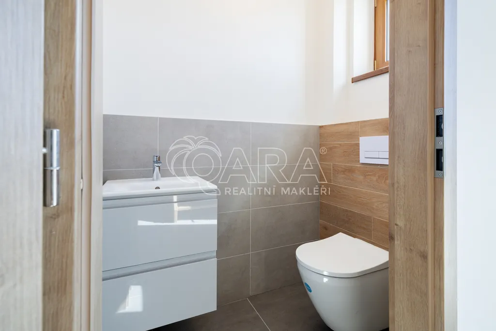 Dům je francouzským oknem v obývacím pokoji přirozeně propojen se zahradou o velikosti 358 m², jejíž součástí je na dům navazující 28 m² vydlážděná terasa, díky jejíž severní orientaci si můžete venkovní prostor užít i v horké a slunné dny. Zahrada je kompletně oplocená, zatravněná a čeká na případné finální úpravy od nových majitelů. Akumulační nádrž (3 m3) pro budoucí hospodaření s dešťovou vodou je již na pozemku umístěna.