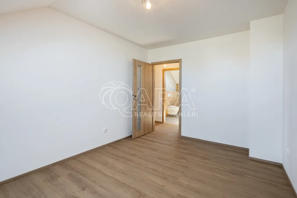 Dům o dvou podlažích (1. NP 54 m², 2. NP 50 m²) je dispozičně řešen jako 4+kk, přičemž v přízemí se nachází společenská zóna: obývací pokoj s kuchyňským koutem, předsíň, samostatné WC a technická místnost. V patře jsou tři samostatné ložnice a velkorysá koupelna se sprchovým koutem (v koupelně je také skrytá příprava pro vanu) a s WC. Téměř v celém domě je položena rigidní vinylová podlaha, v předsíni, technické místnosti a v koupelně je dlažba. V půdním prostoru je vytvořena pochozí půda o velikosti cca 25 m² k ukládání sezónních věcí.