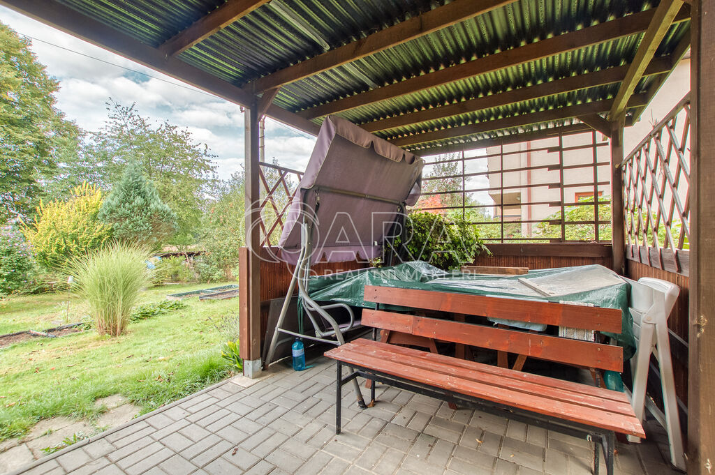 Na zahradě o rozloze 610 m² se nachází vzrostlé stromy a keře, které zajišťují soukromí, a také několik borůvkových keříků. Součástí je i průchozí altánek, který poslouží nejen jako úložný prostor, ale především jako příjemné místo pro letní posezení a grilování.