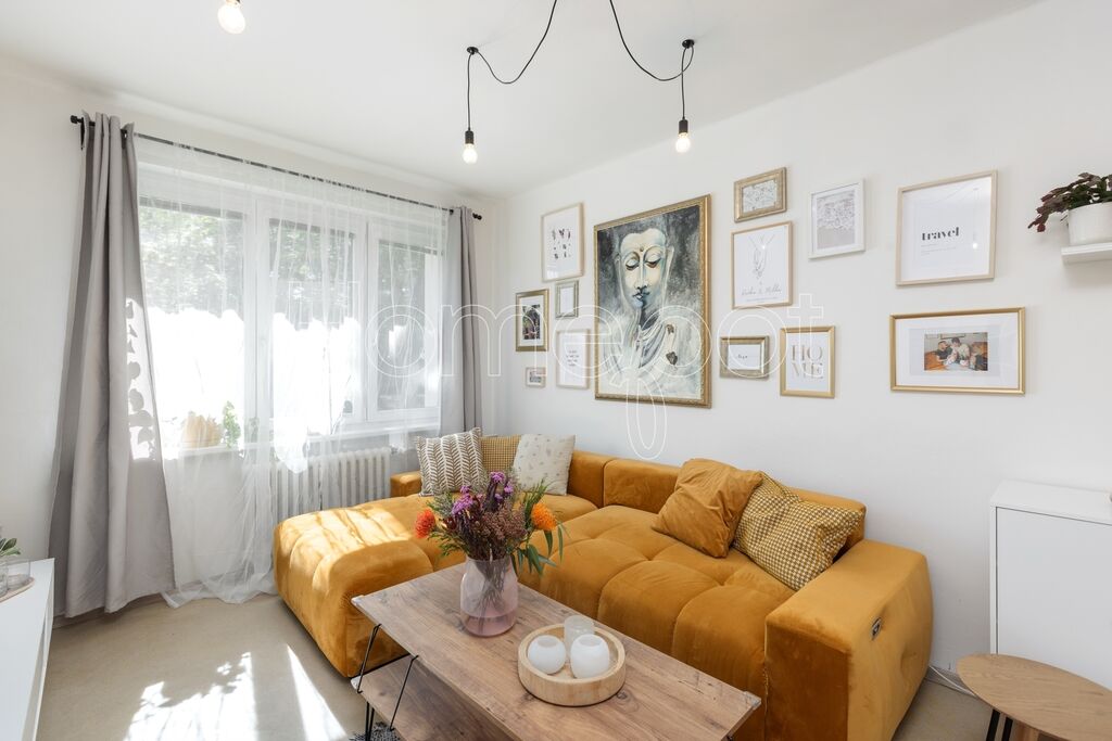 Byt v osobním vlastnictví se nachází ve zvýšeném přízemí menšího cihlového domu se čtyřmi podlažími, který prošel zateplením a má novou fasádu. Světlý a vzdušný dojem je patrný hned – velká okna otevírají byt nejen světlu, ale i pohledu do zeleně, který je tichou přidanou hodnotou. Obývací pokoj s velkým oknem působí příjemně a hřejivě, dětský pokoj má dost místa na hraní i úložné prostory, ložnice zase nabízí klid a soukromí. Kuchyně je samostatná, praktická, s velkým oknem a místem na jídelní stůl.