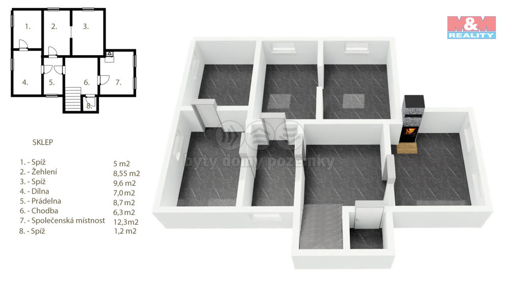 Nabízíme k prodeji rodinný dům v Řevnicích, oblíbeném městečku na Praze - západ s výbornou dopravní dostupností do Prahy autem i vlakem – vlakové nádraží je jen pár minut pěšky a vlaky jezdí několikrát do hodiny. Dům prošel částečnou rekonstrukcí (např. podlahy, střecha, okna). Dispozice domu je 4+1 s užitnou plochou 174 m² (suterén 58 m², garáž 15 m², přízemí 63 m², patro 38 m²). Velkou předností je prostorný suterén s technickým zázemím, dílnou, skladem a společenskou místností s krbem. Nad horním patrem je dále pochozí půda.