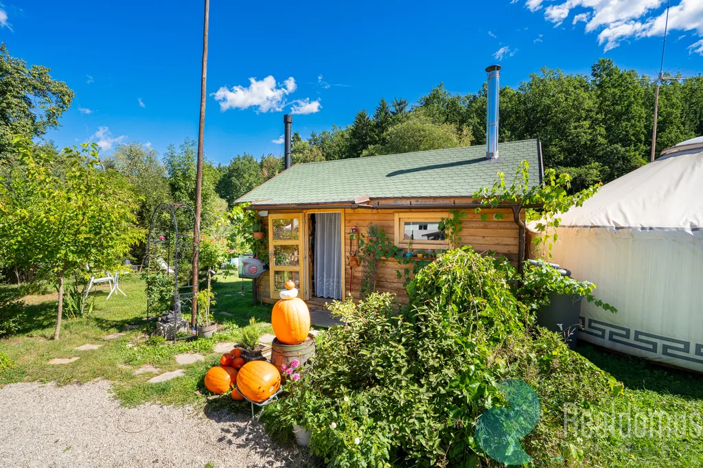 Vedle stodoly stojí jurta, útulný domov s výhledem do údolí. A právě tam je naplánovaný rybník, který čeká na své první jiskřivé odlesky. U jurty bublá vířivka, vedle se rozpaluje sauna. Kolem bzučí včely, ve skleníku a fóliovníku dozrávají papriky, rajčata a okurky, na zahradě se červenají třešně a dýně.