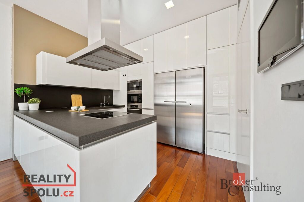 Celý byt je proveden v nadstandardním vybavení, jsou zde použity kvalitní materiály a dispozičně je navržen pro příjemné a komfortní bydlení. Vytápění je centrální, v bytě jsou elektrické vnitřní rolety s dálkovým ovládáním a klimatizační jednotka značky LG s dálkovým ovládáním. Samozřejmostí je prostorná kuchyňská linka včetně spotřebičů od značky Miele, vestavěné skříně a nábytek. Díky velkým oknům je celý byt prosvětlený, vzdušný a nabízí nadčasový design.