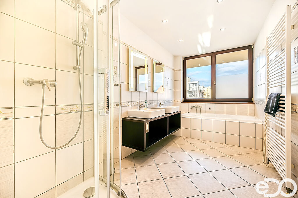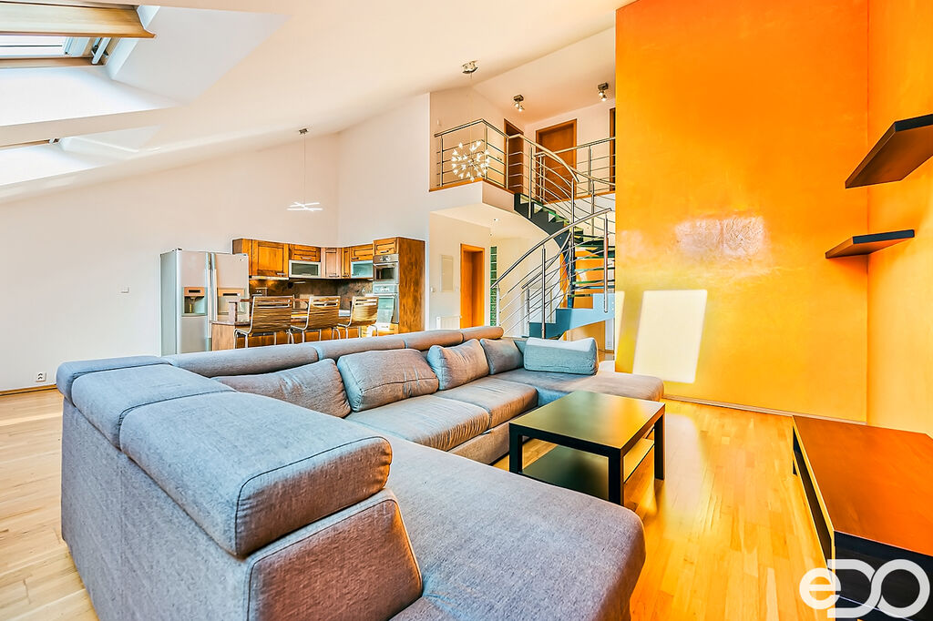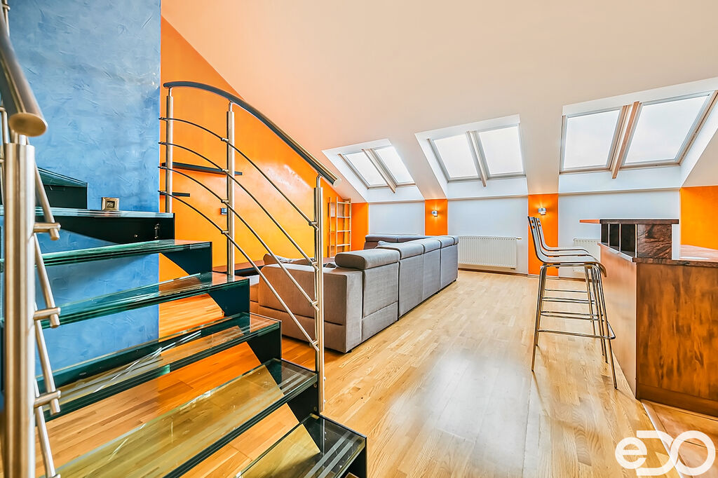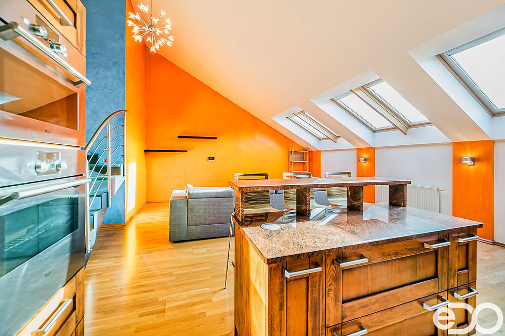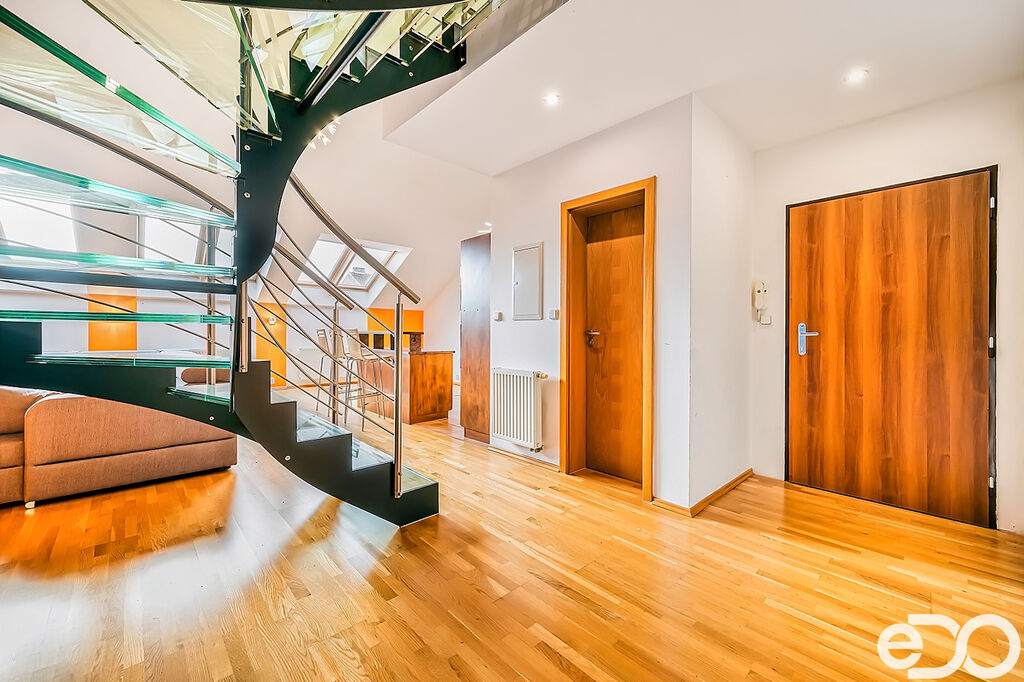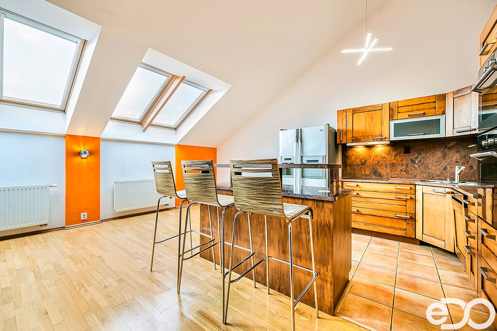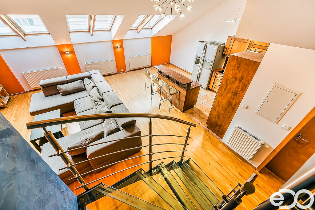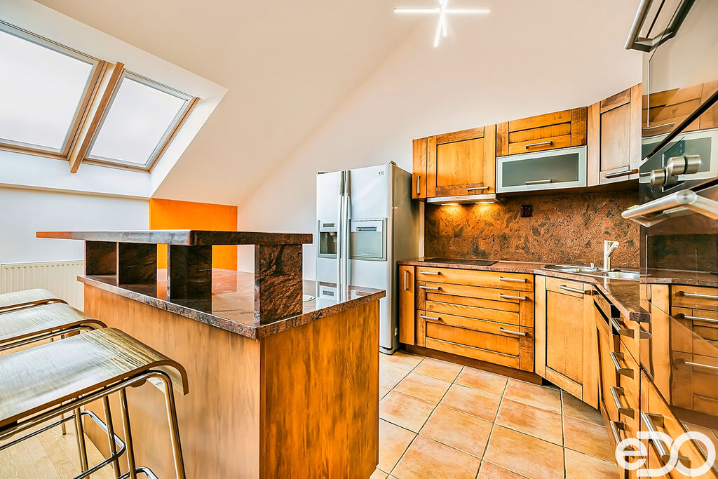 Pronájem atraktivního mezonetového bytu 4+kk se dvěma balkony a velkou střešní terasou – Brno střed ulice Veveří. Všechny obytné pokoje jsou orientovány do vnitrobloku, což skýtá absolutní soukromí a klid. Vstup do bytu je umístěn ve třetím patře (4.NP) historického secesního cihlového bytového domu bez výtahu. Obytná výměra bytu je 133 m2 + dva balkony (každý z nich 5 m2) + střešní terasa 50 m2 + sklep 3 m2. Po dohodě možnost pronájmu parkovacího stání ve vnitrobloku bytového domu. Byt je plně vybaven a zařízen, připraven k okamžitému nastěhování.