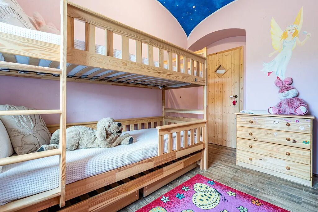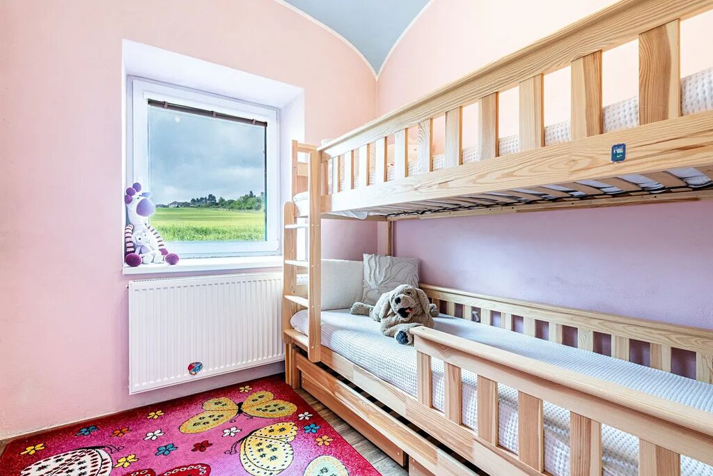 Bydlení je rozděleno do aktuálně dvou samostatných bytů s dispozicí 3+kk, každý s vlastní kuchyní a koupelnou, oba vytápěny pomocí elektrokotle či kotle na tuhá paliva, který najdeme v technické místnosti. Oba disponují krbem. Pod nově vybudovanou střechou najdeme opravdu velký sál, který aktuálně slouží jako meditační centrum. Druhá část podkroví čeká na dokončení, díky čemuž lze vytvořit další obytné prostory, které rozšíří možnosti využití domu. Oba byty disponují terasou s krásným výhledem do zahrady a krajiny za ní.