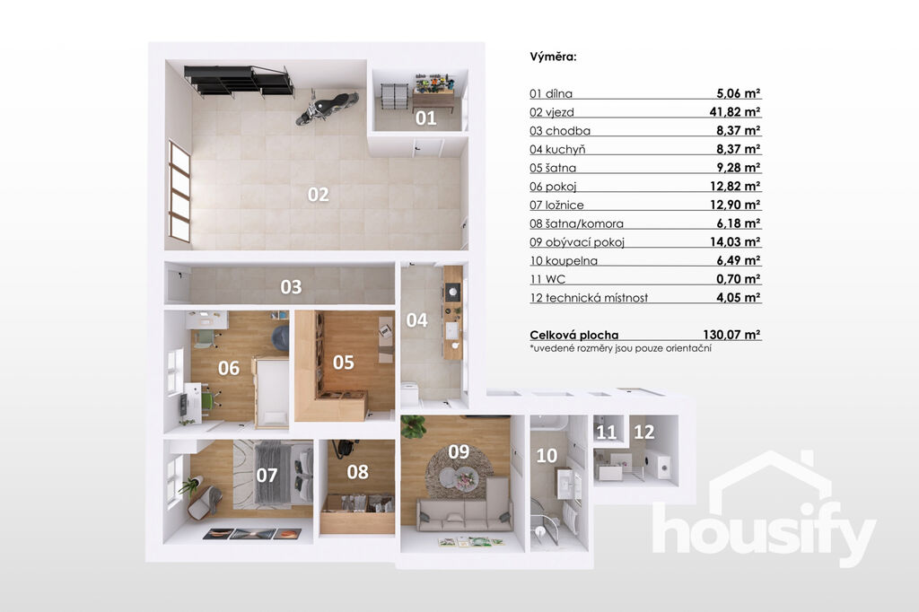 S dispozicí 4+1 nabízí dům dostatek obytného prostoru i pro větší rodinu. Sestává z celkem čtyř obytných místností, kuchyně, koupelny a praktické komory. Další prostor poskytuje průjezd do zahrady, který je možný využít pro parkování auta nebo pro rozšíření obytné části domu.