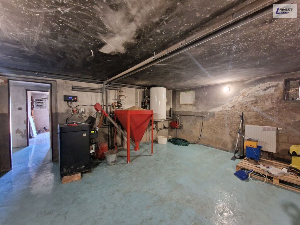 Dům nabízí celkem využití v suterénu domu (72 m2): vstupní chodba, malá tech. místnost, chodba, garáž, prostorná kotelna (vč. novějšího kotle OPOP vč. dávkování a novějšího bojleru Dražice), chodba a 3x sklep.
