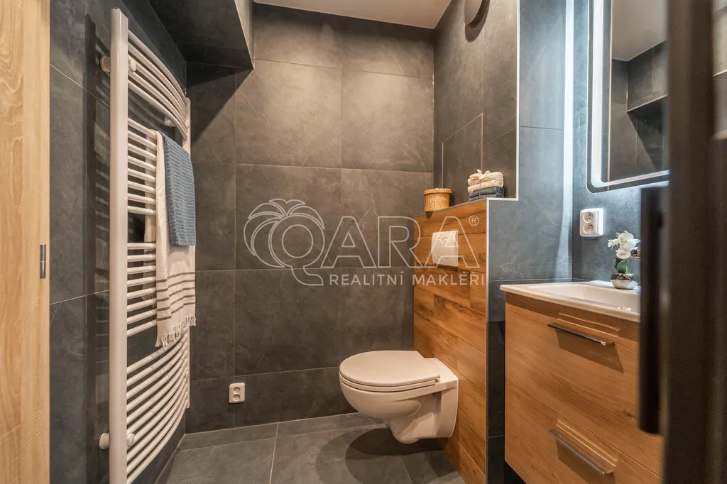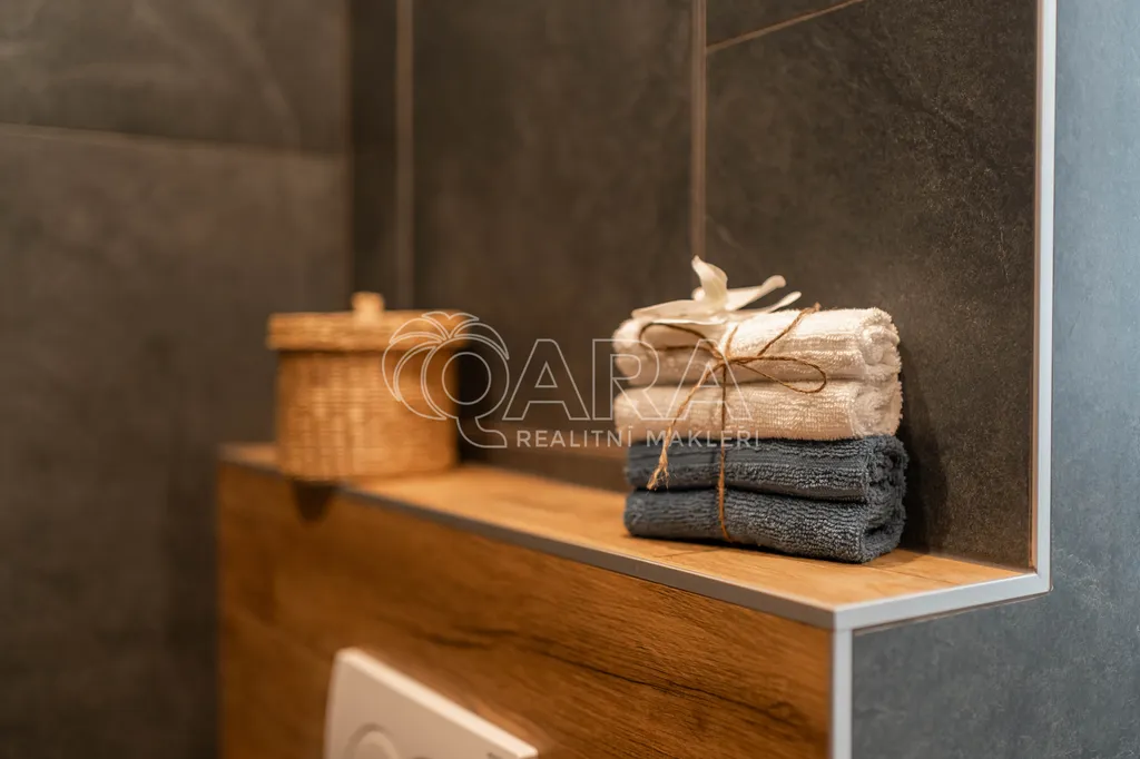 Kompletně nový interiér bytu byl navržen s důrazem na detail a kvalitu s využitím nejmodernějších technologií tak, aby splňoval vysoké požadavky na pohodlné a praktické bydlení. Otevřený koncept obývacího pokoje a kuchyně vytváří příjemný prostor pro rodinné setkávání nebo večírky s vašimi přáteli. Moderní kuchyňská linka je vybavena nejnovějšími spotřebiči včetně přípravy na vestavěnou pračku a nabízí dostatek úložného prostoru pro všechny vaše kulinářské potřeby. Navržena byla ve spolupráci s renomovanou značkou Oresi a je na ni 10 let záruka.