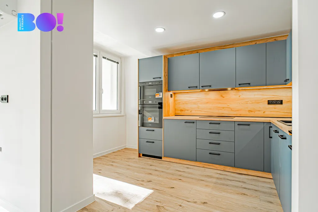 Byt o dispozici 3+kk se šatnou a podlahovou plochou 89,08 m² prošel kompletní rekonstrukcí, takže se stačí jen nastěhovat a začít bydlet. Nachází se ve 2. NP a samozřejmostí je také sklepní kóje.