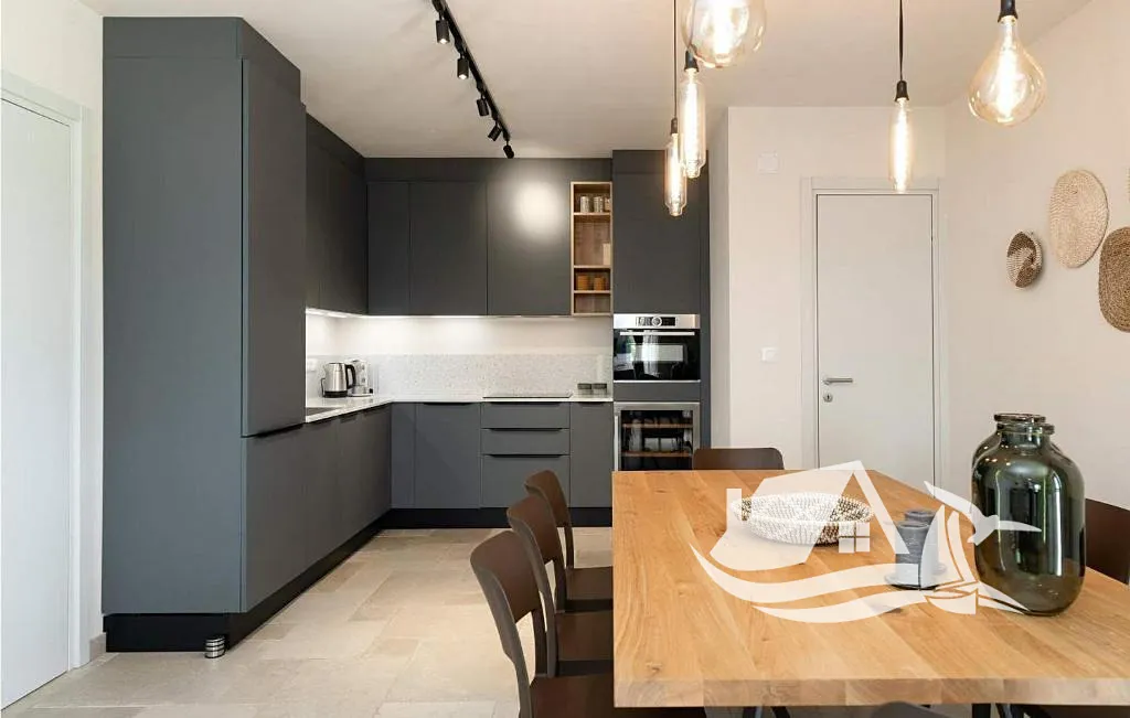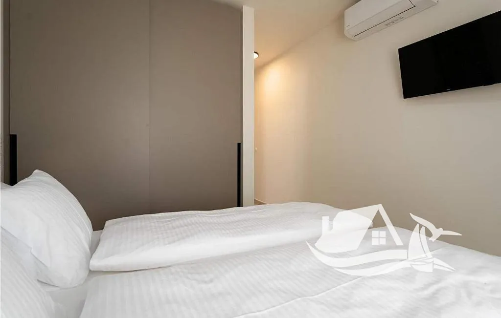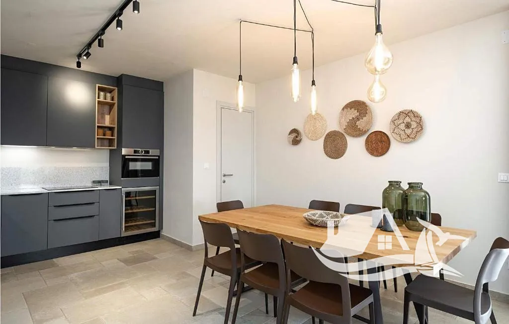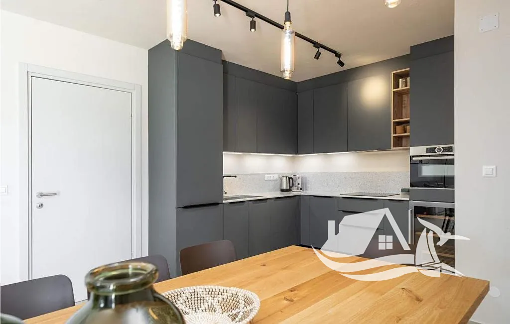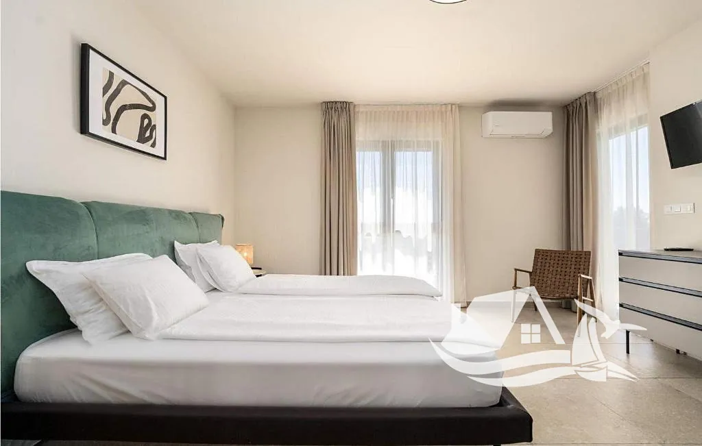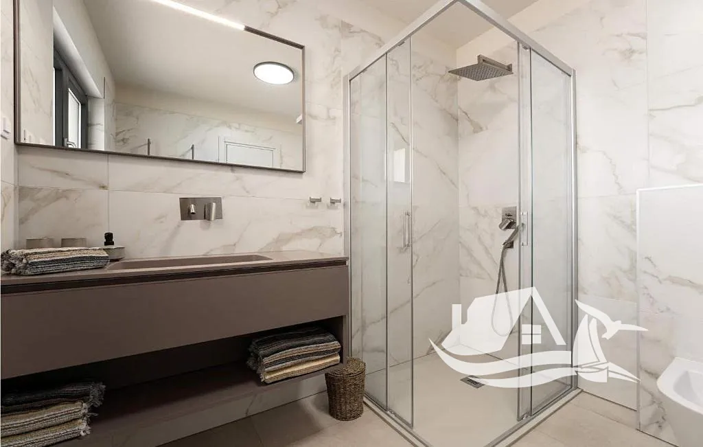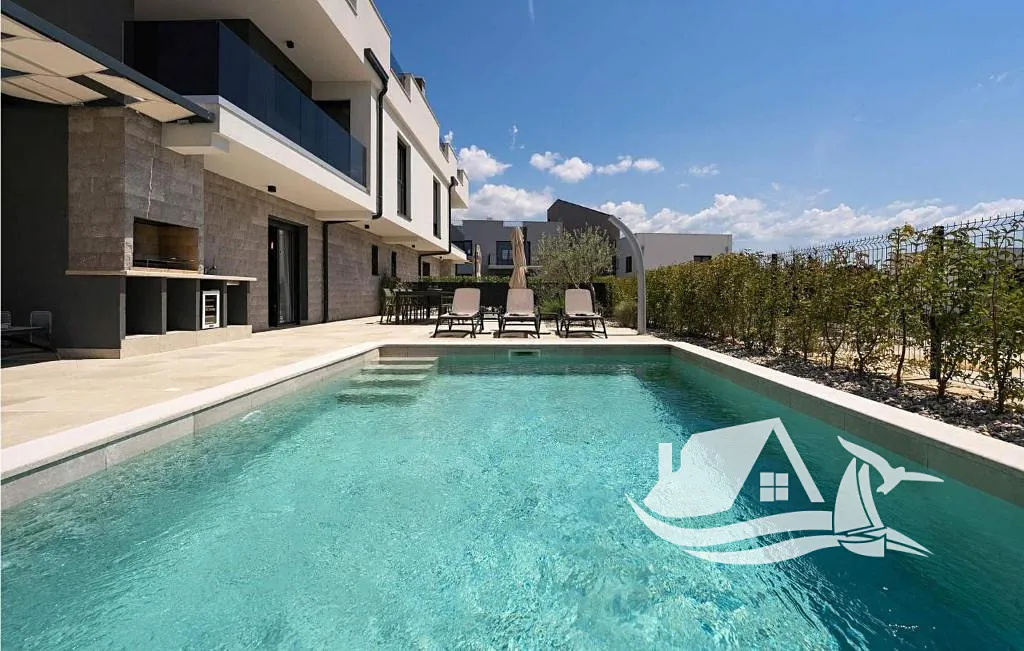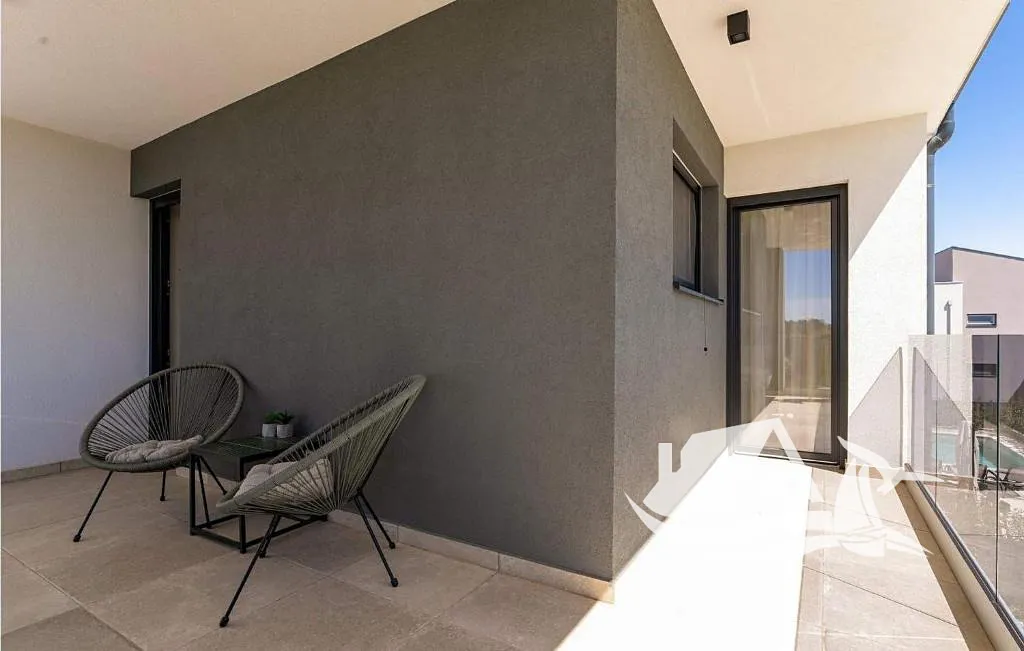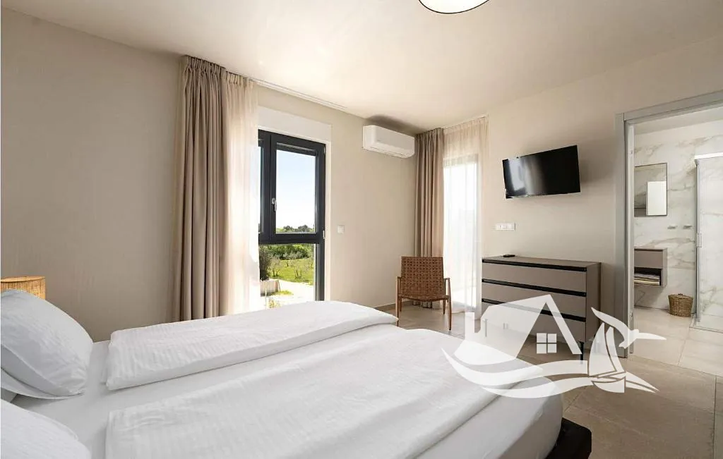 Tato vila (dvojdům)stojí na pozemku o rozloze 366 m² a její obytná plocha činí celkem 150 m². Dům je rozdělen do tří podlaží – přízemí, první patro a střešní terasa – a nabízí naprosto vše, co od moderního a pohodlného bydlení u moře očekáváte. Architektonicky je dům navržen s ohledem na praktičnost, estetiku a maximální využití prostoru. Přitom si zachovává příjemně domácký charakter a je ideální jak pro trvalé bydlení, tak i pro sezónní využití nebo krátkodobý pronájem.