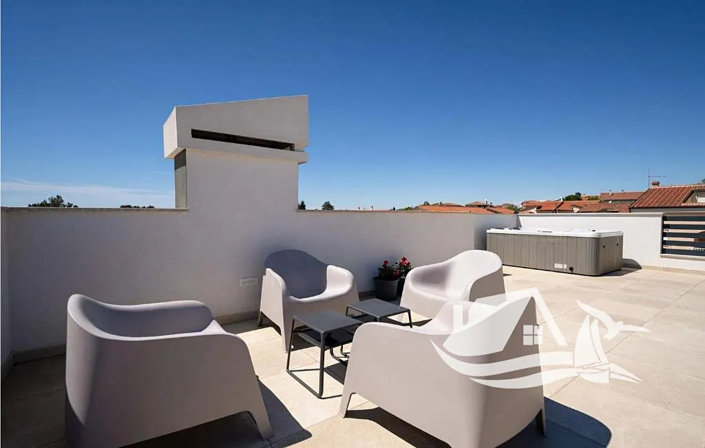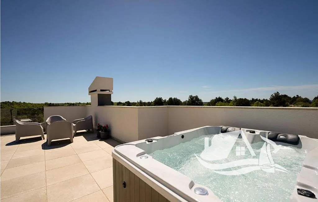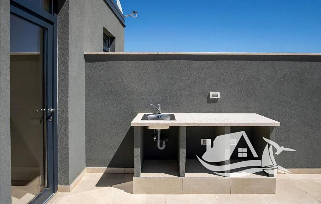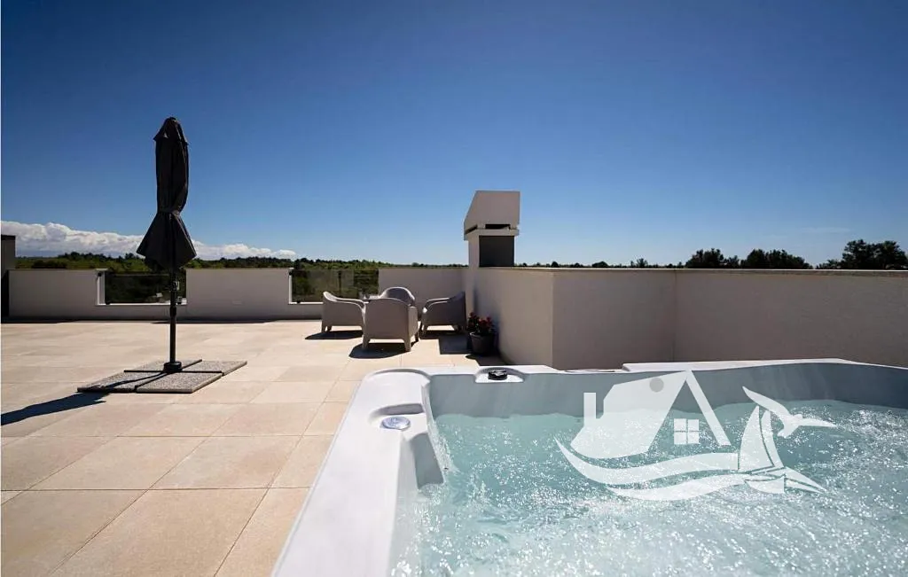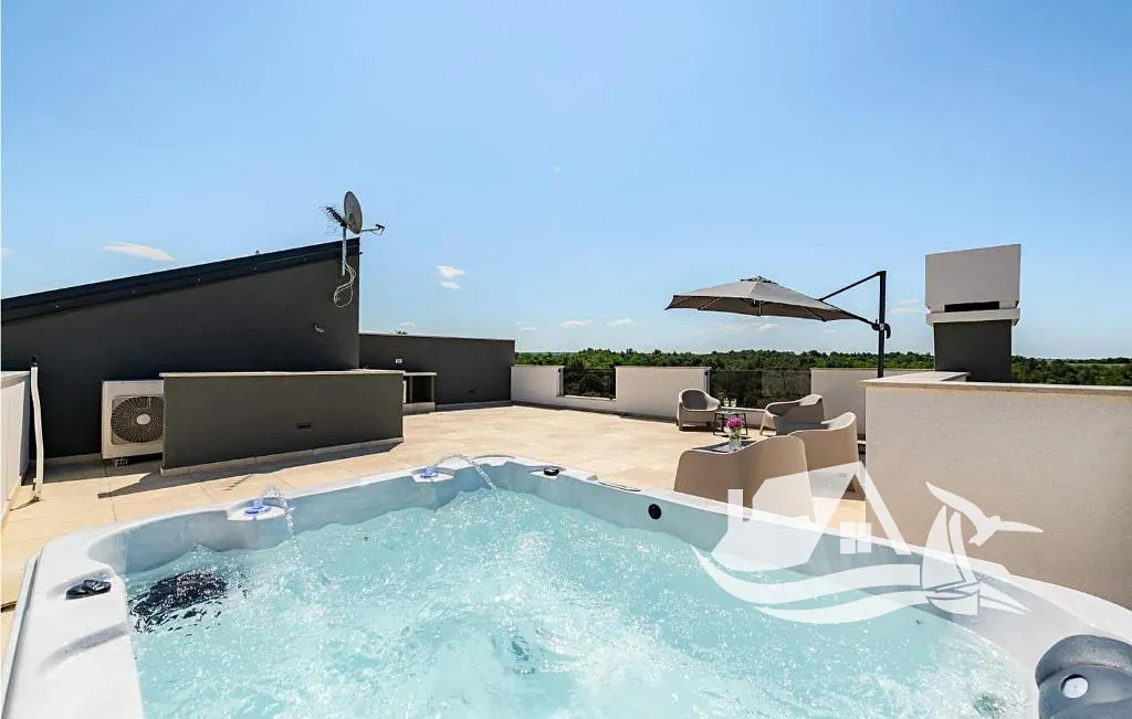 Třešničkou na dortu je prostorná střešní terasa, která je navržena jako relaxační a společenská zóna. Je vybavena vířivkou (jacuzzi), kde si můžete dopřát chvíle odpočinku s výhledem na okolní zeleň a istrijské krajiny. Nechybí zde ani plně vybavená letní kuchyně, ideální pro večerní posezení, grilování nebo klidné snídaně pod širým nebem. Tato terasa zvyšuje užitnou hodnotu celé nemovitosti a zároveň nabízí jedinečný zážitek z bydlení, který byste v bytě nikdy nezažili.