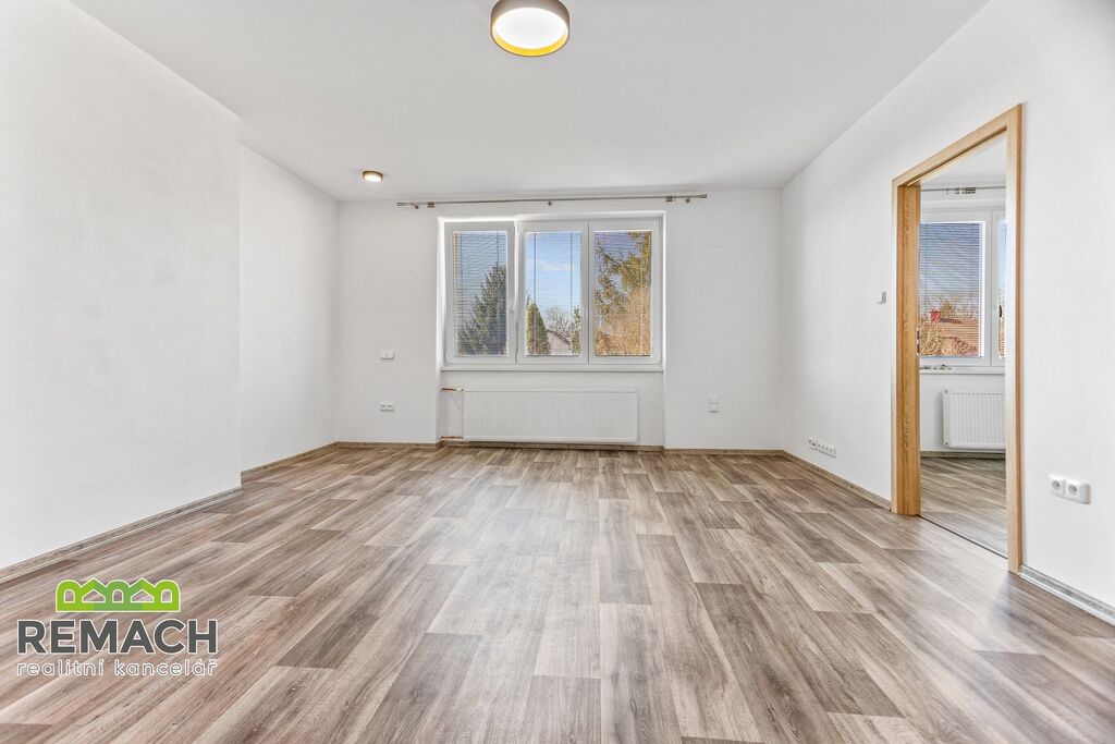 Dispozice: 2+1 ( vstupní chodba s úložnou vestavnou skříní ve výklenku, velký obývací pokoj se vstupem do ložnice nebo dětský pokoje.