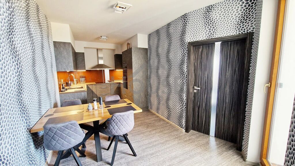Součástí ceny je nadstandardní garážové stání v hodnotě 700.000 Kč. Po dohodě lze odkoupit i zařízení bytu.