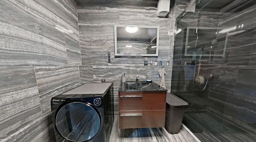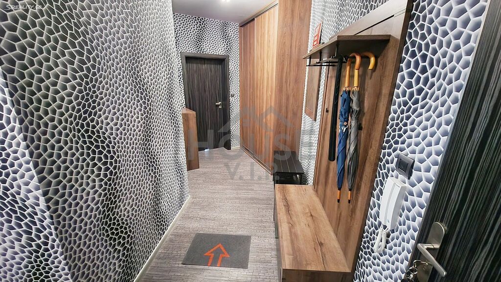 Byt byl navržen přímo na míru majitelem a při jeho realizaci se kladl důraz na velkorysý prostor i maximální soukromí. V dispozici najdete tři samostatné pokoje, kuchyni, dvě koupelny, dvě toalety, komoru s policovým systémem a prostorný obývací pokoj s přímým vstupem na terasu.