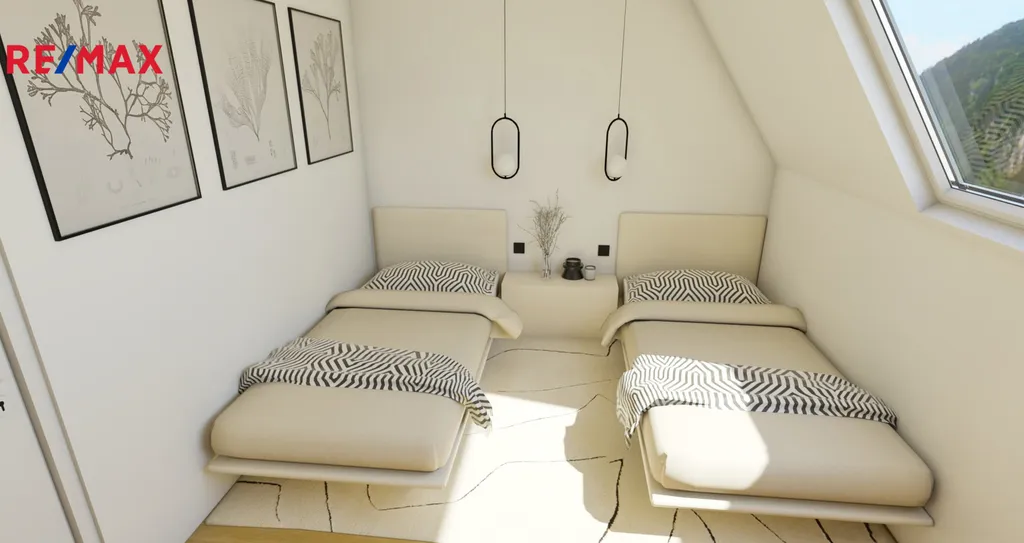 Byt se nachází v půdní vestavbě domu a disponuje novou střechou, novými okny a vlastním samostatným vstupem, což zajišťuje soukromí i komfort. V projektu je navržena dispozice 4+1, ale finální uspořádání si můžete navrhnout sami – a vytvořit si tak domov přesně na míru.