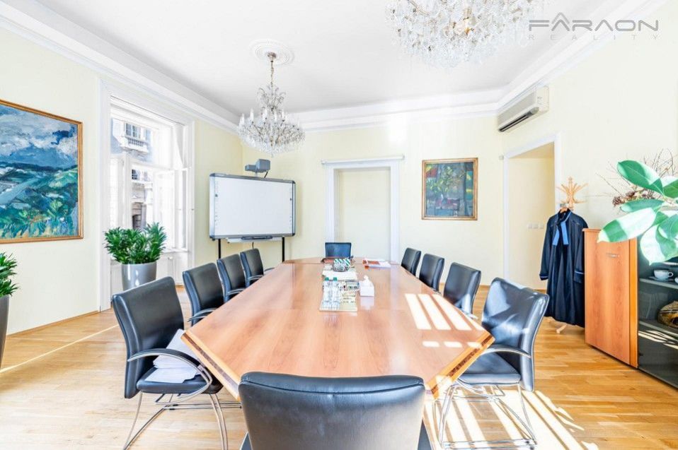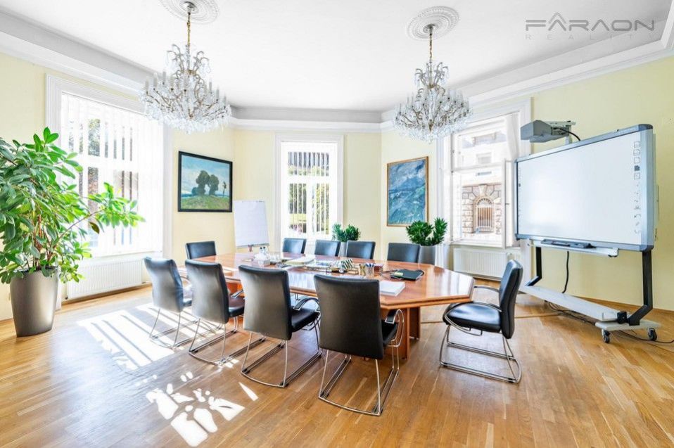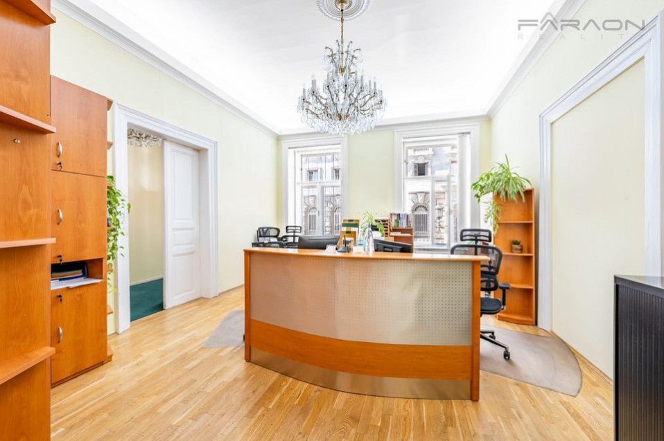 Pronájem reprezentativních kancelářských prostor (334,5 m2) v 1. patře historické budovy na prestižní adrese na Praze 1 s výhledem na Státní operu i do klidného vnitrobloku.