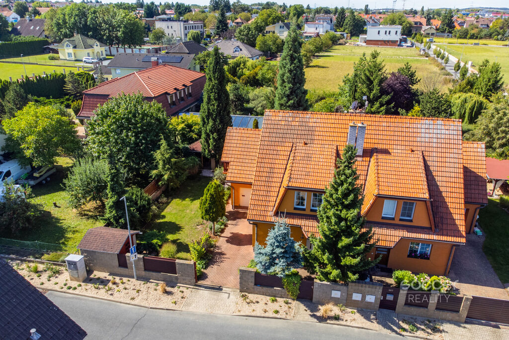 Dům o podlahové ploše 122 m² byl dokončen v roce 2000 a je vystavěn jako polovina dvojdomku. Je ve velmi dobrém stavu, pravidelně udržovaný, a proto je ihned připraven k nastěhování bez nutnosti zásadních investic. Součástí je garáž (cca 21 m²), terasa (cca 14 m²), lodžie (cca 4 m²) a částečně upravený půdní prostor (cca 19 m²). Celková plocha pozemku činí 410 m².