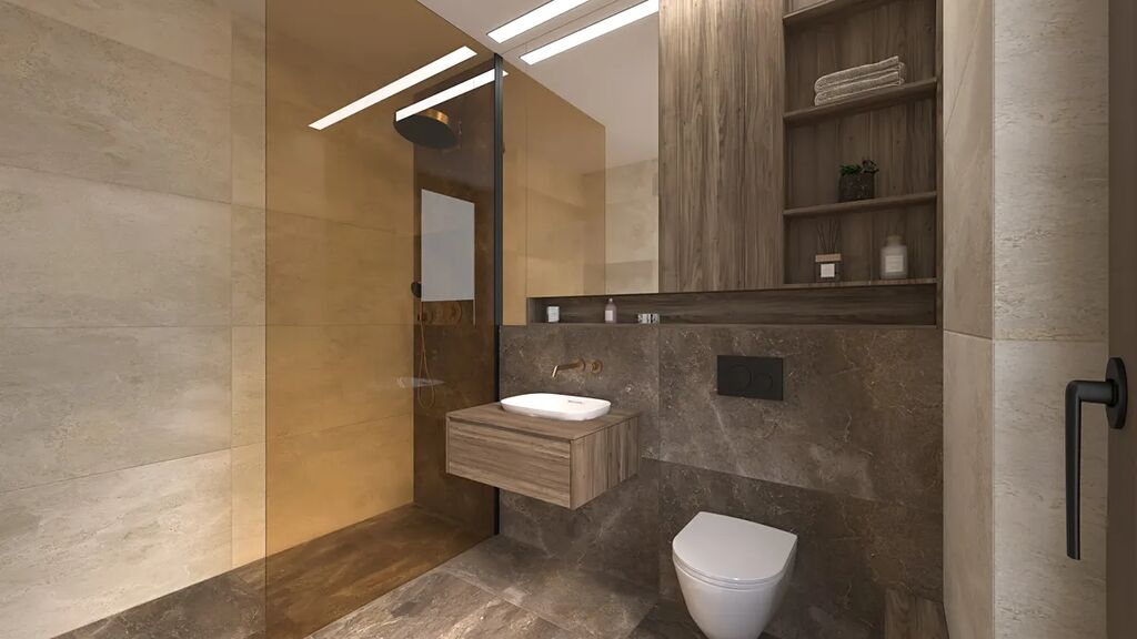 - Hliníková okna, dřevěné podlahy, designová sanita a obklady