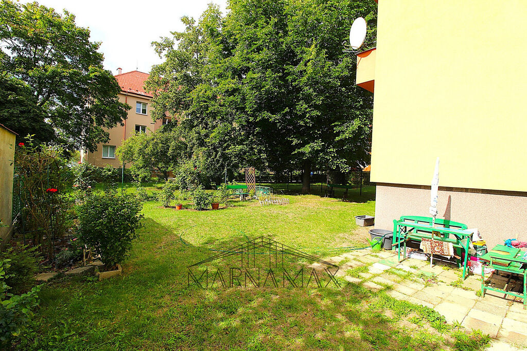 K bytu patří možnost užívat krásně udržovanou zahradu o ploše 1 255 m². Ať už si tu chcete v létě číst, posedět s přáteli, nebo jen chytat slunce, tenhle prostor vám přinese pocit, že bydlíte v domě se zahradou, i když jste v bytě.
