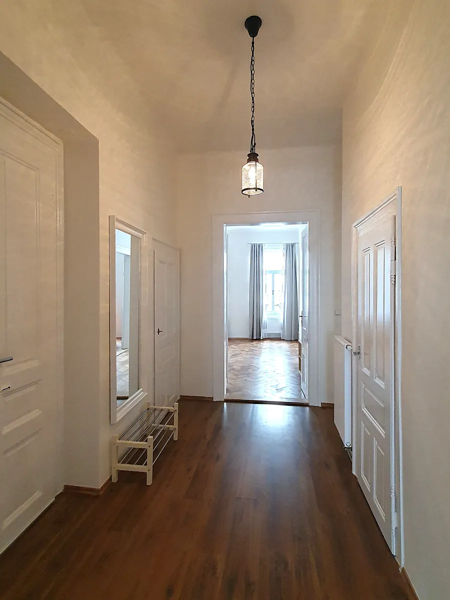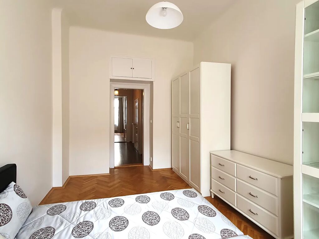 Nabízíme k pronájmu velmi pěkný, prostorný, částečně zařízený byt 3+1 v prvním patře činžovního domu na Vinohradech.