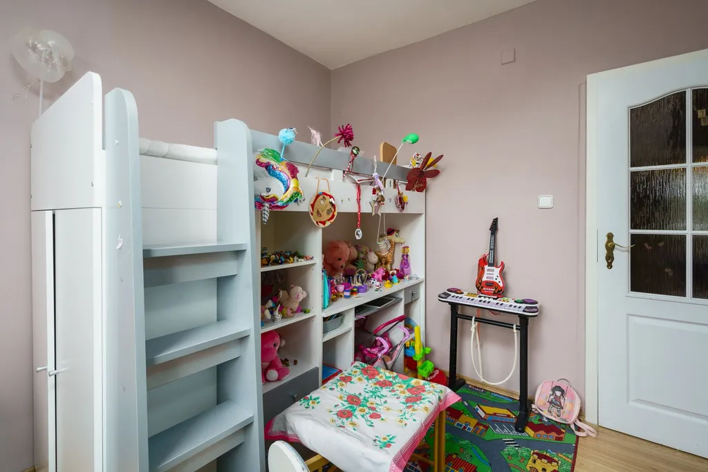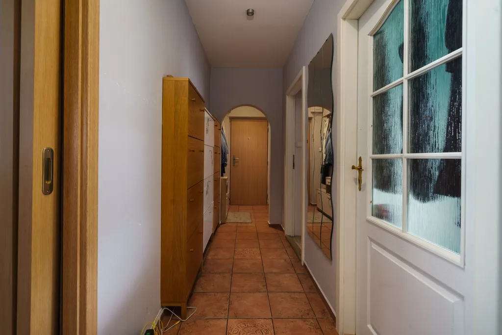 Byt se skládá z obývacího pokoje s kuchyní a vstupem na lodžii, ložnice, dětského pokoje, menší ložnice pro hosty (lze využít jako pracovnu nebo dle přání), koupelny s vanou, samostatného WC a chodby, ze které je přístup do všech výše uvedených prostor. Byt je kompletně zařízený (nábytek je zahrnut v prodejní ceně).