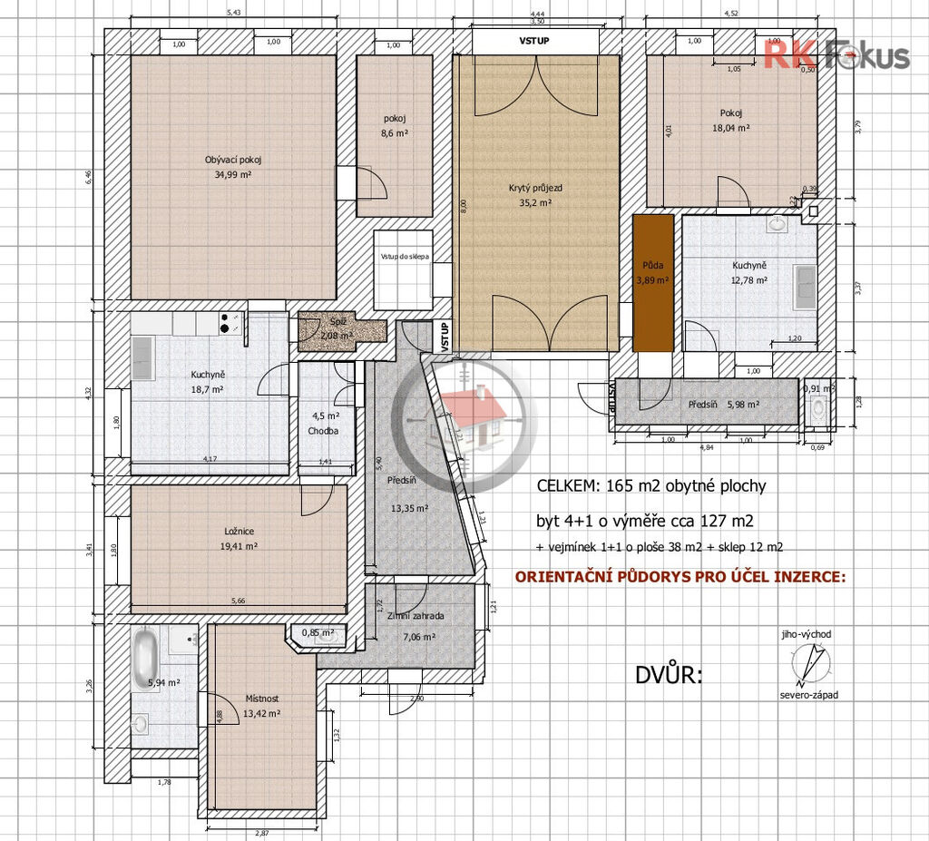 Dispozičně je dům rozdělen na bytovou jednotku 4+1 (127 m2) a samostatný vejmínek 1+1 (38 m2) s vlastním vchodem, který je připraven k dokončení podle představ nového majitele – ideální pro vícegenerační bydlení, pronájem nebo podnikatelské využití (např. kancelář, ubytování apod.).