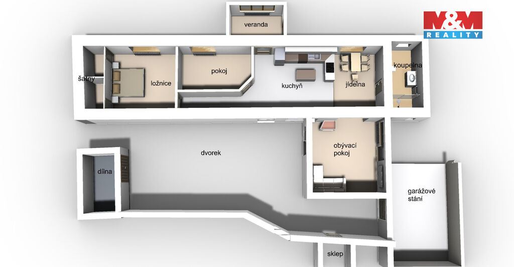 Tento dům z kombinovaného zdiva (kámen a cihla) má užitnou plochu 105 m² a nachází se na pozemku o rozloze 887 m², kde jsou 2 studny - jedna napojena na vodárnu u domu. V domě právě probíhá rekonstrukce, která se blíží ke svému dokončení - nová plastová okna a balkónové dveře, ze 3/4 nové vnitřní omítky, kompletně nová elektroinstalace, rozvody vody, odpady a topení s radiátory, nový plynový kondenzační kotel na topení a ohřev vody. Cena za nemovitost je po jejím dokončení. Pokud si budete chtít současný stav dodělat sami, je možno o ceně jednat. Kuchyňská linka není součástí, ale plán pro její instalaci je připraven.