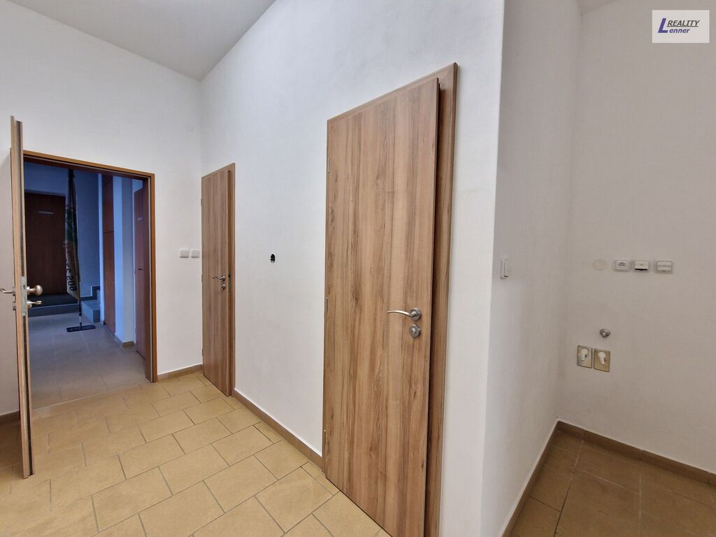 Prostor je dispozičně řešen zádveřím kde se nachází koupelna vč. sprchového koutu, samostatná toaleta s WC Geberitem, místo pro pračku a sušičku, prostorná kancelář s kuch. koutem, kde bude zcela nová kuch. linka vč. základních spotřebičů.