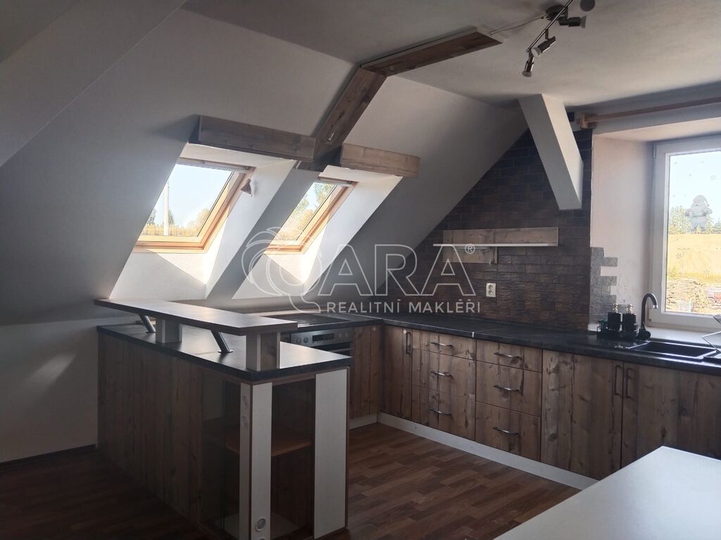 Dlouhodobý pronájem světlého a hezky řešeného bytu 1+1 o velikosti 90 m², který se nachází v posledním patře kompletně zrekonstruovaného domu na adrese Vídeňská 383 v Nové Bystřici.