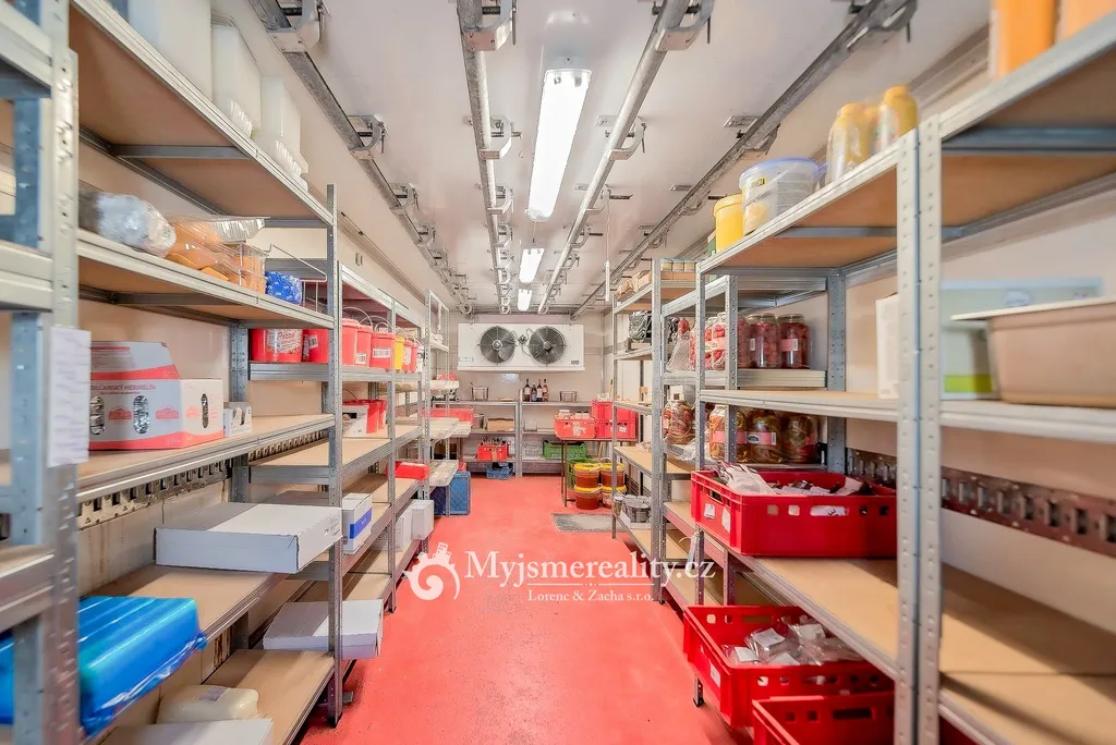Objekt zahrnuje provozovnu s kuchyní, technickou místnost, toalety, skladovací prostory - chladicí box 20 m2 umístěný na zahradě, sklep, menší hospodářskou část a samostatnou místnost k pronájmu s vlastními měřidly vody a elektřiny. Vedle domu je pozemek vhodný pro parkování, případně další využití.