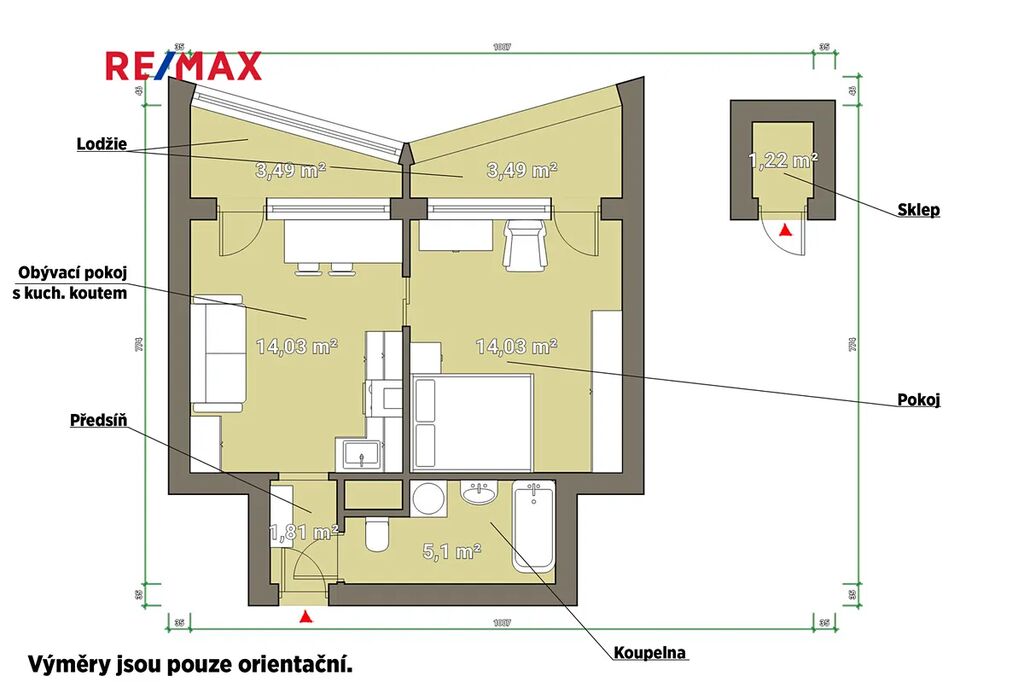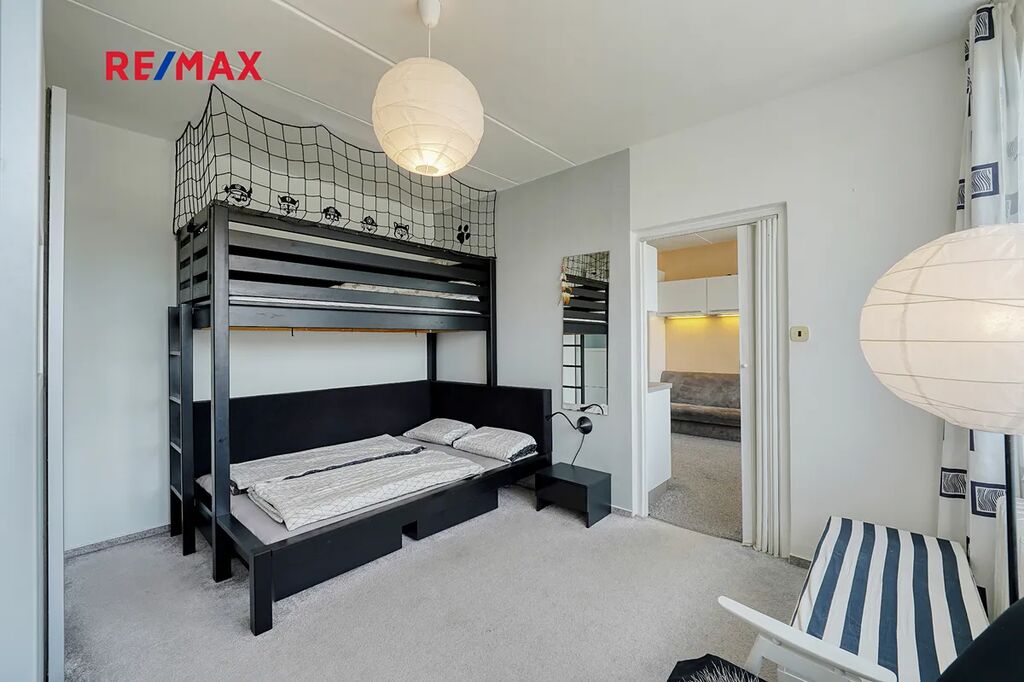 Dispozice bytu zahrnuje vstupní chodbu, koupelnu s toaletou, obývací pokoj s kuchyňským koutem a ložnici. Vstup na lodžie je možný z obou pokojů, navíc jedna lodžie je vybavena odtahovacími skleněnými okny, což se může hodit například v zimním období. Byt je vytápěn dálkově, stejně tak je řešen i ohřev vody. Byt je pronajímán nevybavený. Parkování je možné přímo před domem. Dopravní spojení je zajištěno v podobě tramvaje č. 2, která se nachází do jedné minuty chůze od domu a o kousek dál naleznete i zastávku trolejbusu číslo 12. Do centra města se dostanete autem za pouhé 3 minuty, nájezd na dálnici D5 je vzdálen 5 minut jízdy.
