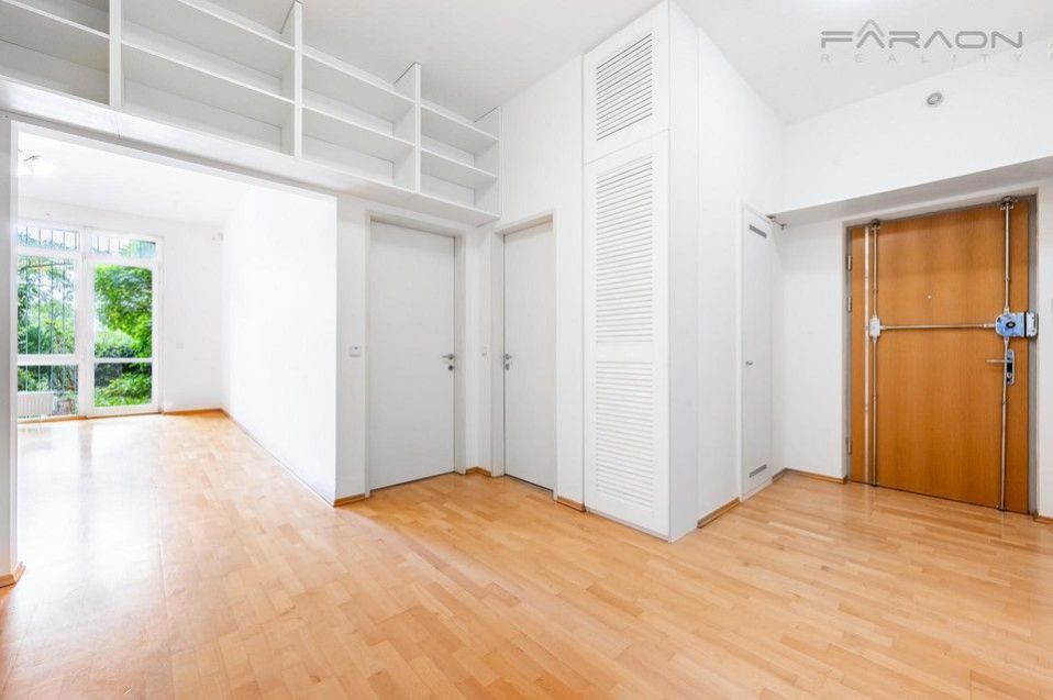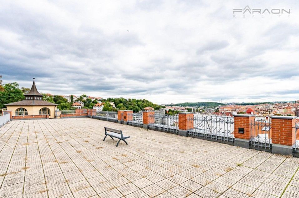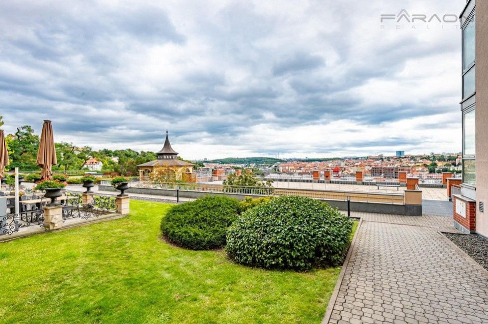 Pronájem mimořádně prostorného bytu 2+kk (63,14m2) s terasou a předzahrádkou (48,8m2) se vzrostlou zelení zajišťující pocit soukromí a intimity, s garážovým stáním a sklepem v ceně nájmu, v atraktivní, klidné a velmi žádané Rezidenci Zvonařka na Královských Vinohradech s recepcí, 24 /7 ostrahou, vnitřním vyhřívaným bazénem, terasou s neopakovatelnými výhledy na Prahu a privátním upraveným parkem ve vnitrobloku.