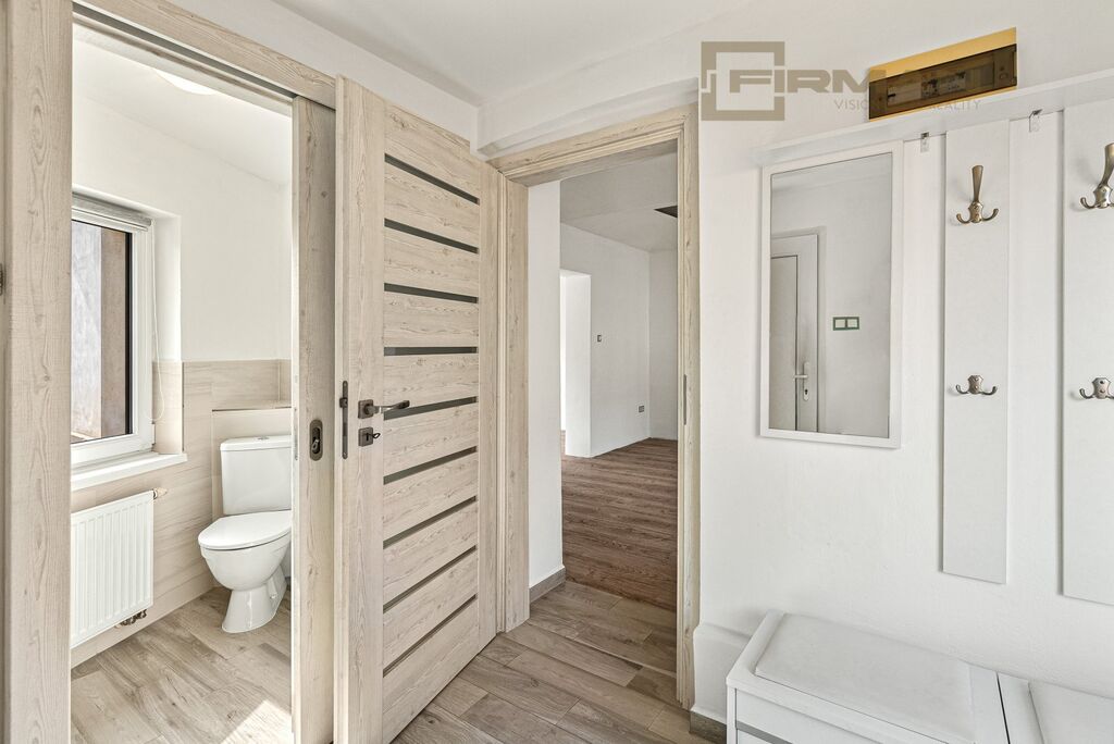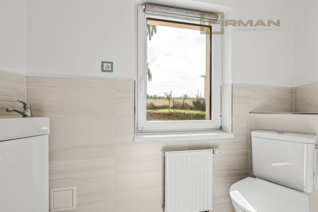 Už při vstupu vás přivítá předsíň s praktickou toaletou – maličkost, která ale zpříjemní každodenní život. Odtud projdete do prostorného obývacího pokoje, který tvoří srdce celého domu. Tady se budou odehrávat rodinné večery, oslavy i klidné chvíle pohody. Navazuje na něj kuchyně s francouzským oknem, které otevírá pohled do zahrady – ideální místo pro snídani s výhledem do zeleně.