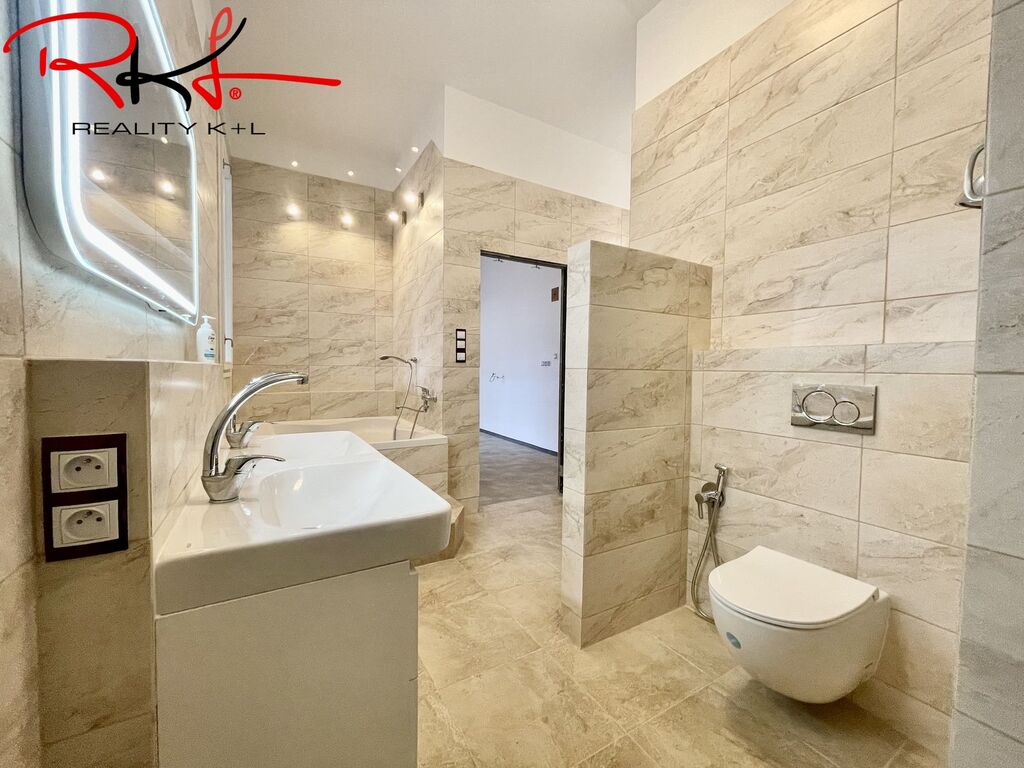 Vnitřní dispozice: Vstupní chodba, vstup do obývacího pokoje spojeného s kuchyňským koutem, kuchyňský kout vybaven moderními vestavnými spotřebiči. Hlavní ložnice má velkou šatnu,balkón a samostatnou koupelnu se sprchovým koutem. Technické zázemí. Dětský pokoj, se šatnou. Hlavní koupelna s vanou a sprchovým koutem a toaletou.