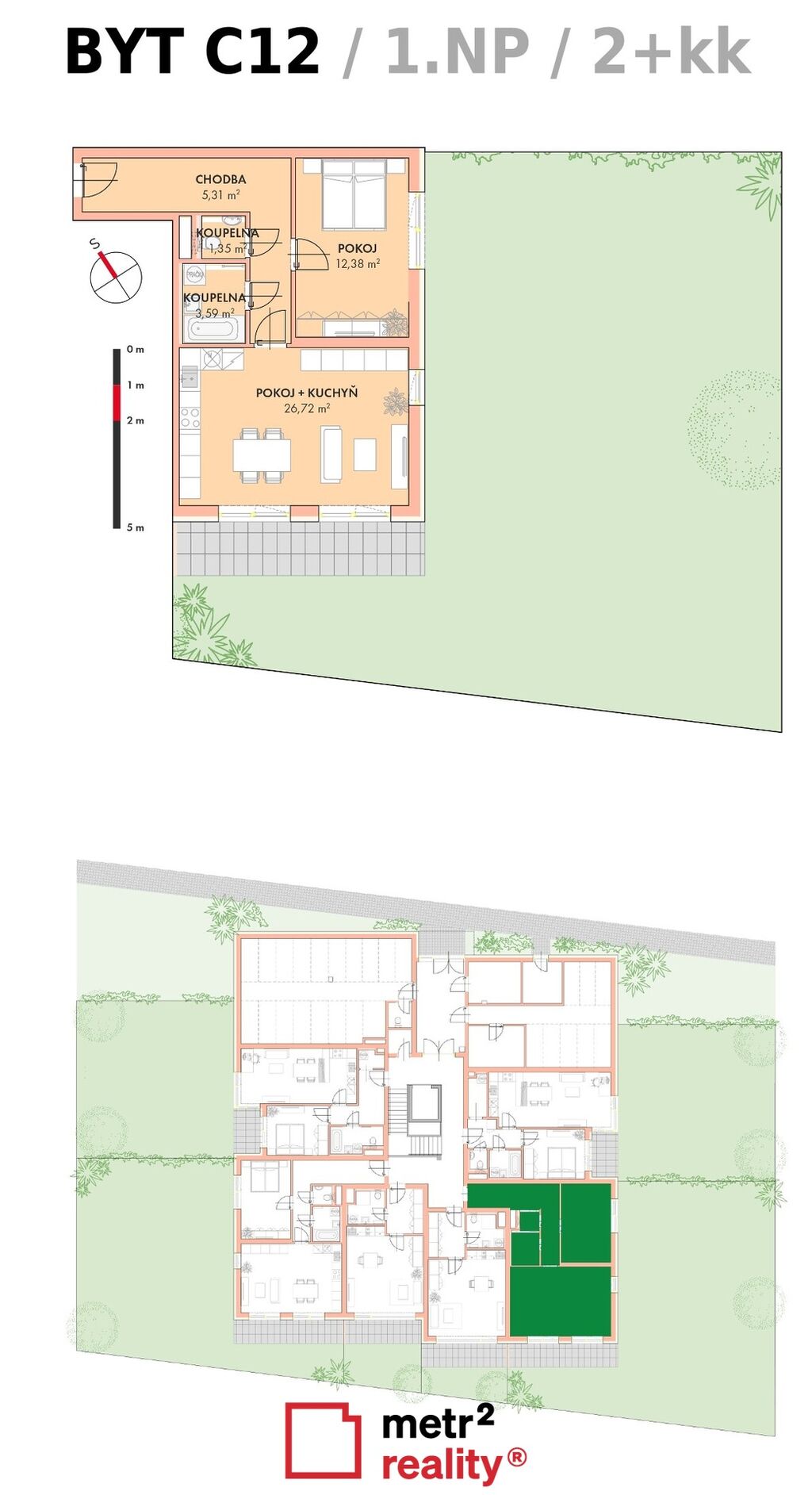 Sníte o vlastní zahrádce, ale nechcete se starat o rodinný dům. V tom případě pro Vás máme to pravé. Ve výhradním zastoupení majitele si Vám dovoluji nabídnout k prodeji byt o dispozici 2+kk v novostavbě bytového domu v Uničově, na ulici Pionýrů. Dům byl zkolaudován v roce 2023 v rámci nové výstavby a jedná se dům, který je umístěn ve slepé ulici a tím zaručuje klidné a nerušené bydlení. Byt má výměru 62,3 m2, k němu náleží terasa o velikosti 10,4 m2 a zahrada o výměře 280 m2. Orientace bytu a zahrada je na jihozápad a nabízí prostor k relaxaci a odpočinku. Byt je velmi dobře dispozičně řešený a nabízí svému uživateli prostorný obývací pokoj s kuchyňským koutem a francouzskými okny, kterými pohodlně vyjdete na terasu. Ložnice má krásnou výměru 15,75 m2 a je zde prostor na velkou šatní skříň. Koupelna se sprchovým koutem a prostorem na pračku a sušičku. Wc s umyvadlem je umístěno samostatně. V bytě jsou plovoucí podlahy, kuchyňská linka na míru s vestavěnými spotřebiči, vyjma lednice, která je samostatně stojící a žaluzie v oknech. Součástí ceny je taktéž vlastní sklep. V domě je pak společná kolárna. Byt je vhodný jak k vlastnímu bydlení, tak na investici a následné pronajímání. V případě zájmu o prohlídku mne neváhejte kontaktovat a ráda Vám ji domluvím.