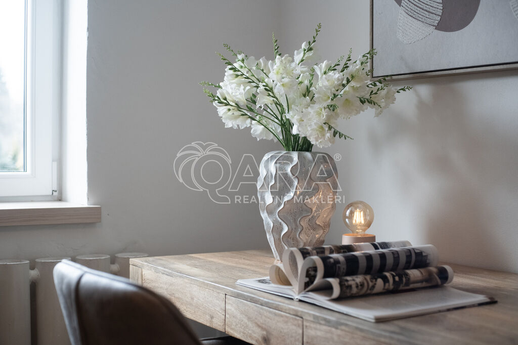 Nad kuchyňským koutem je velkorysý otevřený prostor o rozloze 35 m², který je přístupný po skládacím žebříku. Tento jedinečný pokojíček se hodí jako pokoj pro hosty, ateliér nebo třeba dětský koutek, odkud si užijete nádherný výhled. A to není vše! Novostavba skrývá promyšlené designové prvky, jako jsou pouzdrové dveře a dveře do koupelny, které jsou šikovně schované ve skříni. Tyto detaily je nejlepší vidět naživo. Energetický štítek náročnosti budovy (PENB) vychází na kategorii B.