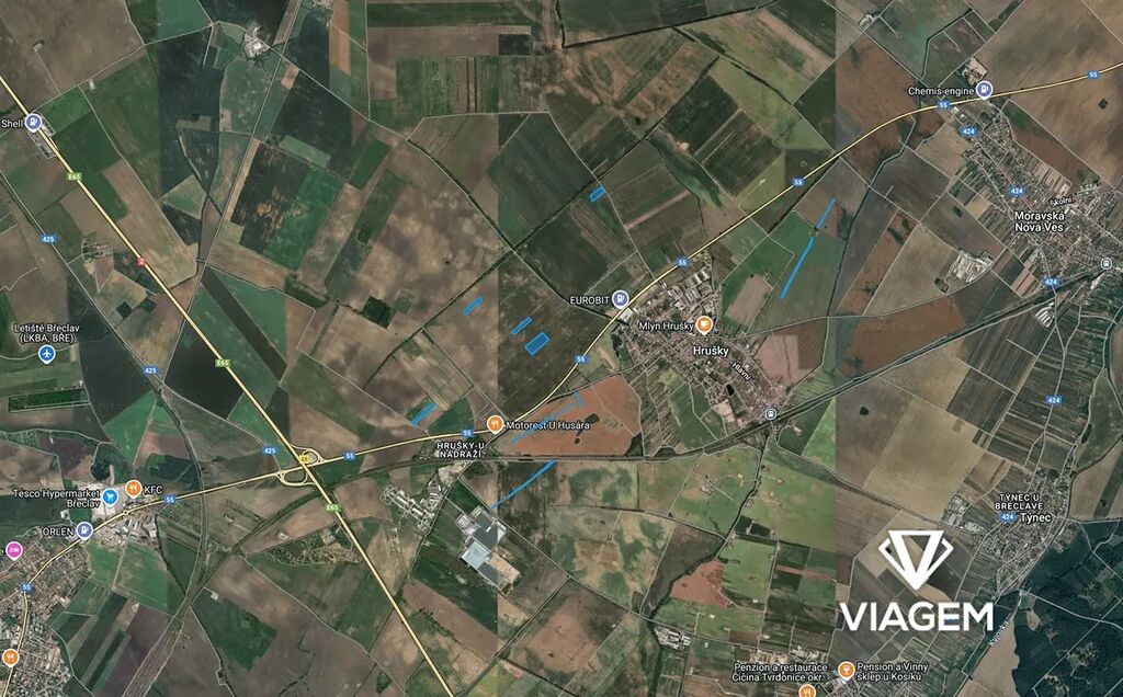 - parc. č. 2155/19 - výměra 20 236 m² - hospodařící "AGROTREND HRUŠKY", spol. s r.o. hospodaří na 20 232 m²