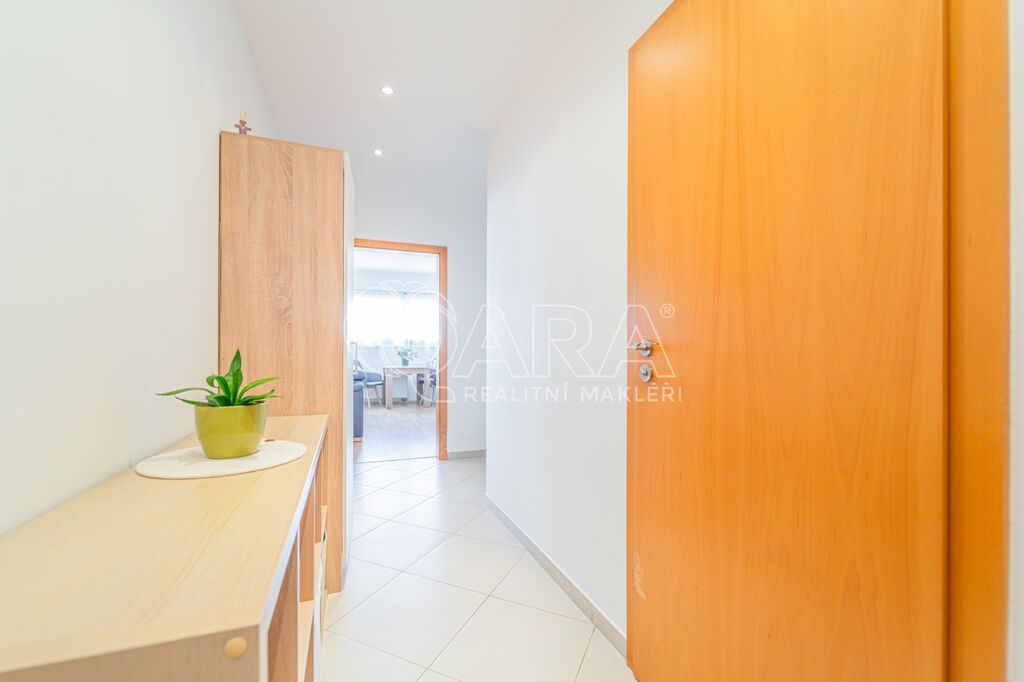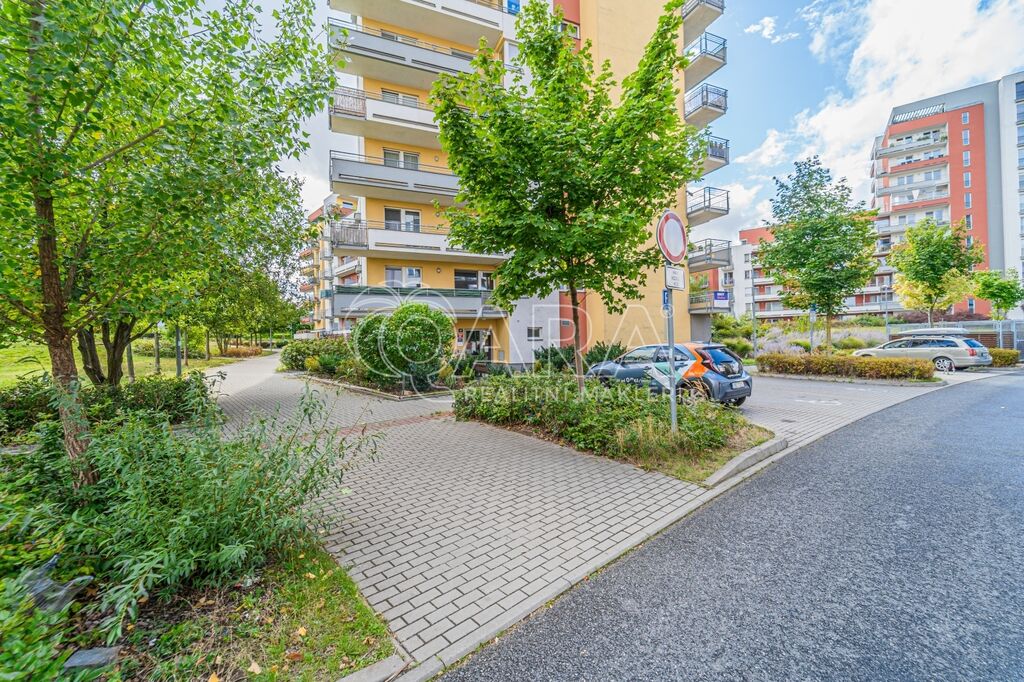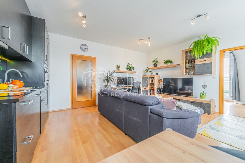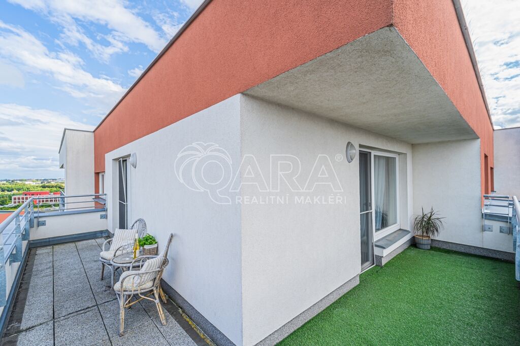 Byt má dispozici 2+kk o ploše 51 m2 a k němu patří také terasa o ploše 20 m2, parkovací stání v garáži přímo u výtahu a sklep (4 m2) umístěný hned za parkovacím stáním.