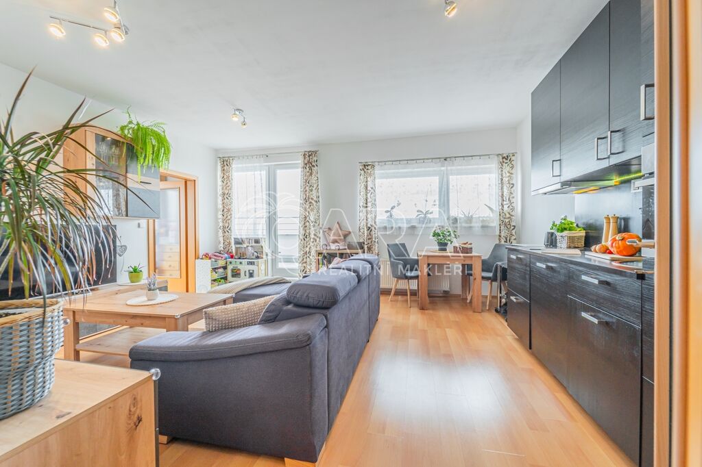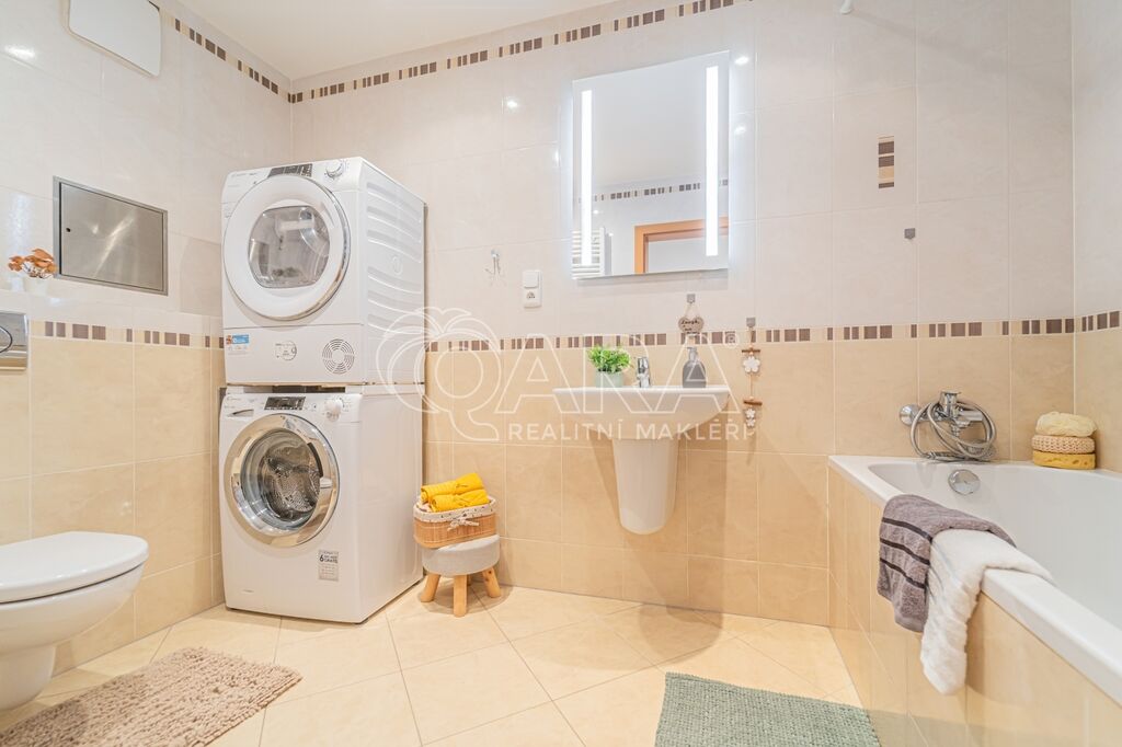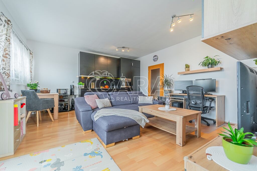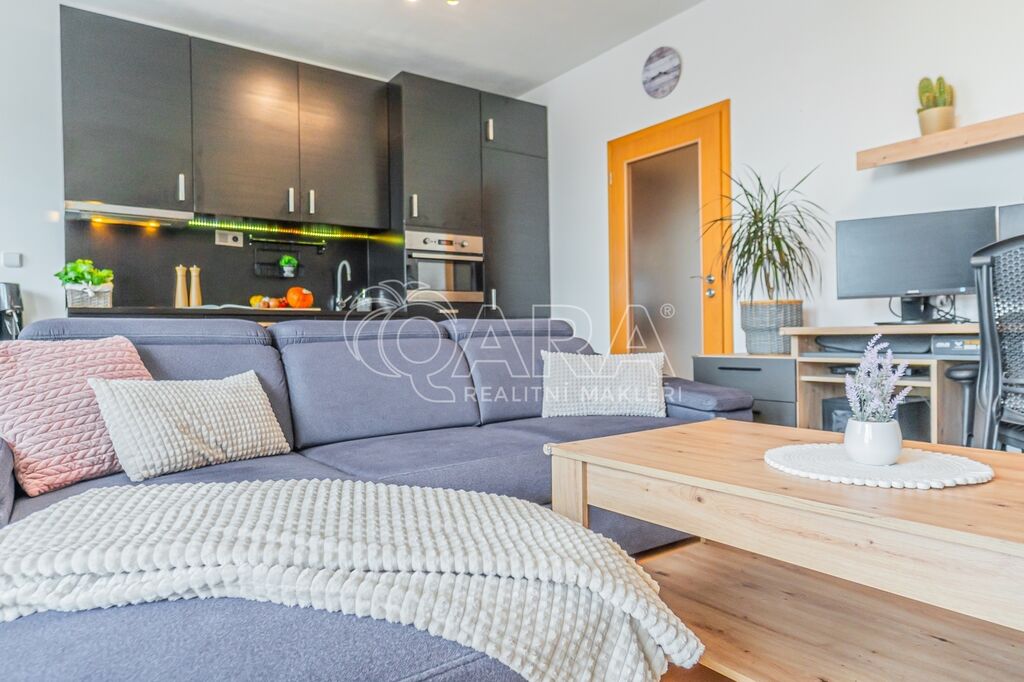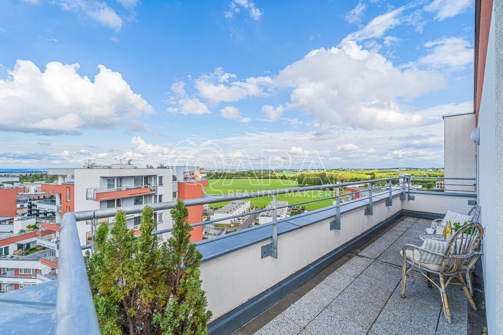 Byt má dispozici 2+kk o ploše 51 m2 a k němu patří také terasa o ploše 20 m2, parkovací stání v garáži přímo u výtahu a sklep (4 m2) umístěný hned za parkovacím stáním.